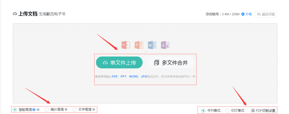 第三步:选择上传PDF文件,可支持PDF、Word、PPT、JPG这四种格式文件,这样就算大功告成了