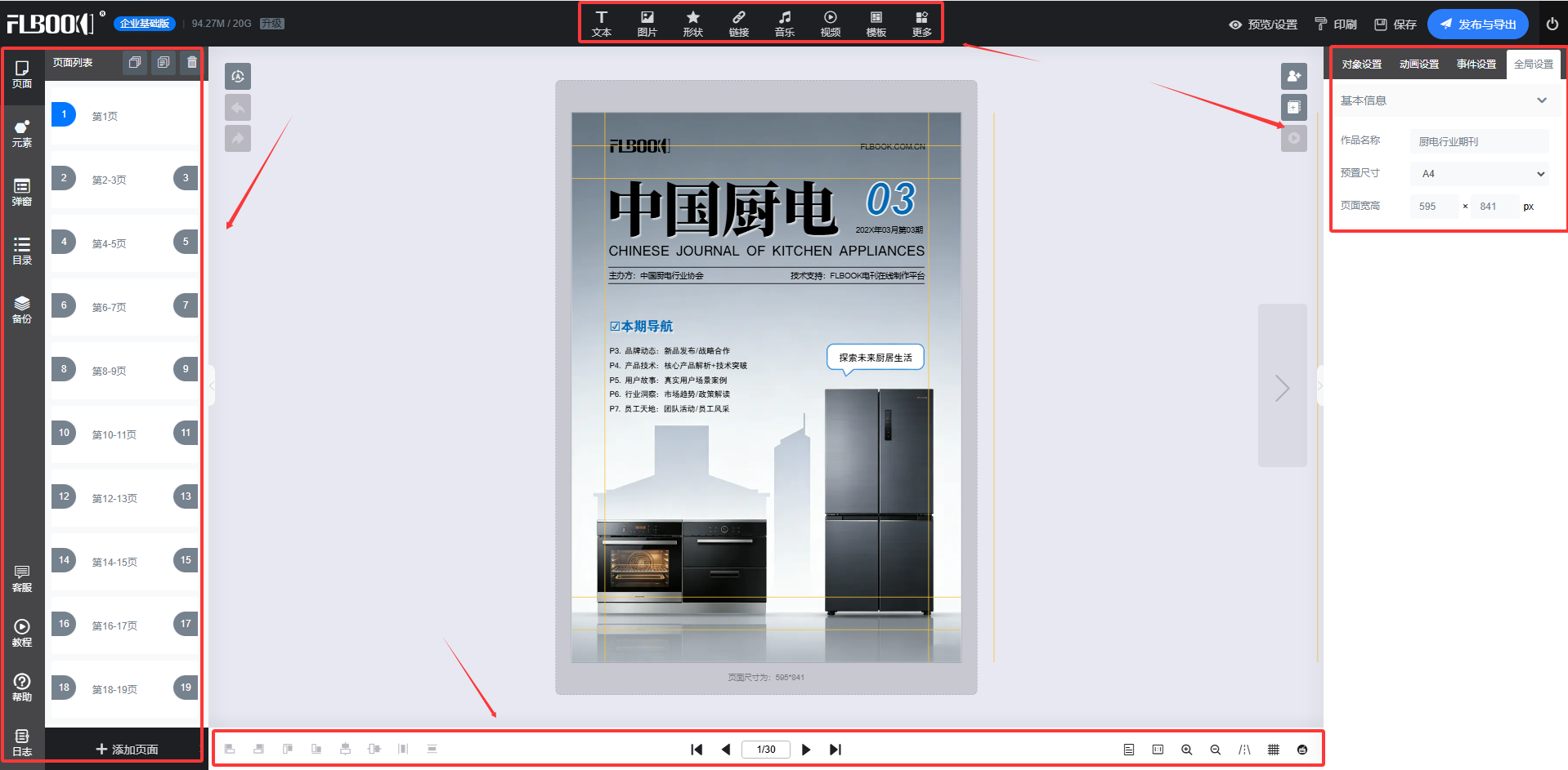 进入编辑界面后,双击页面中的文本框,即可编辑文字内容。FLBOOK 支持多种字体、字号、颜色等设置,还可利用 AI 功能辅助进行文本润色。可以插入视频、音频、动画等元素,丰富电子书内容。