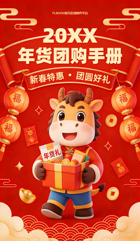 使用FLBOOK电刊平台制作2026年货团购手册通用电子模板,可替换文字和图片