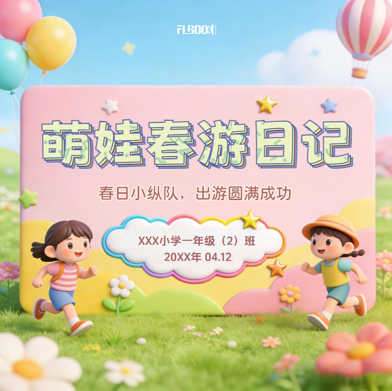 使用FLBOOK电刊制作学生踏青春游纪念相册,双击可替换文字和图片