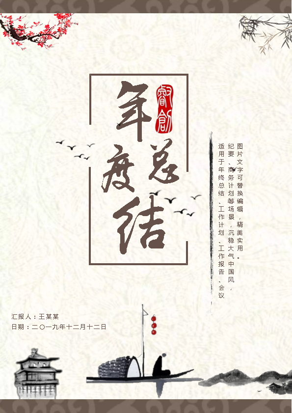 使用FLBOOK电刊平台制作中国风个人工作总结工作汇报通用模板,可替换文字和图片