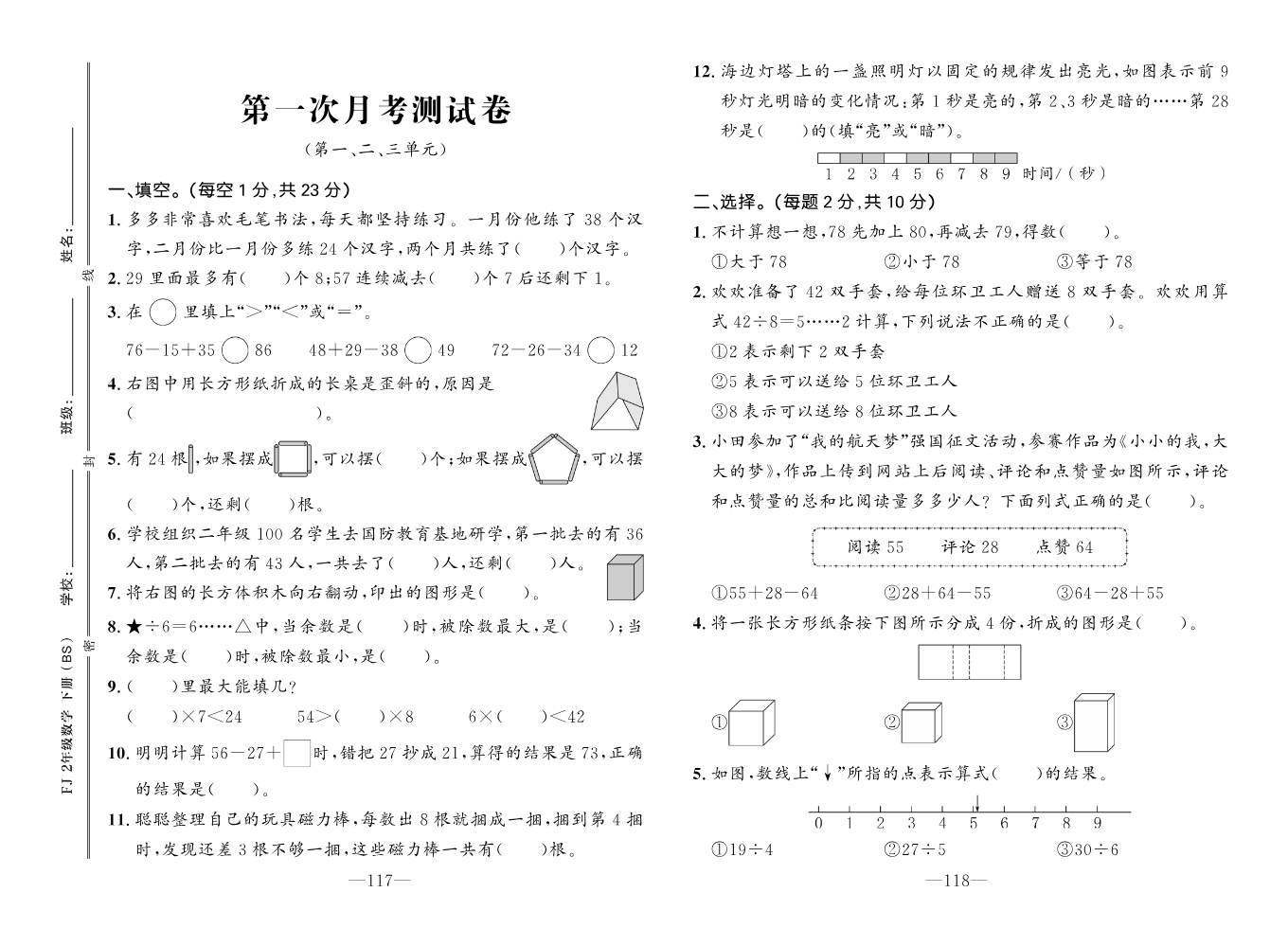 书刊名称:培优作业本•北六数下•月考卷&期末预测卷