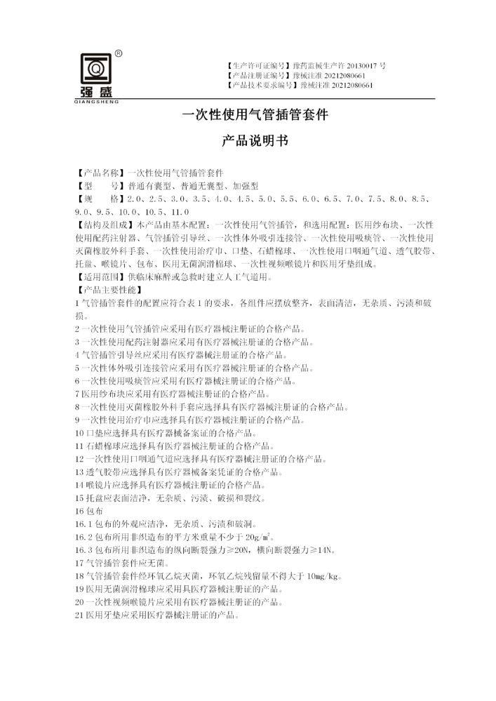 一次性使用气管插...