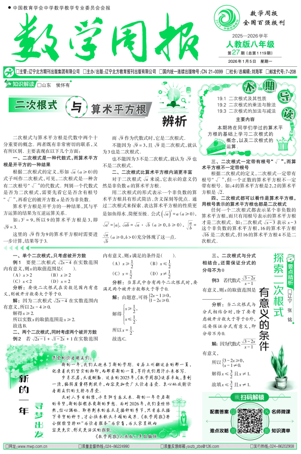 书刊名称:2025-2026《数学周报》人九上试卷电子样报