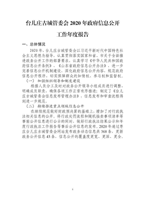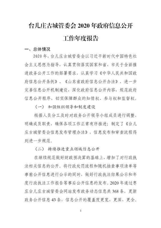 书刊简介:枣庄台儿庄古城管理委员会2022政府信息公开工作年度报告