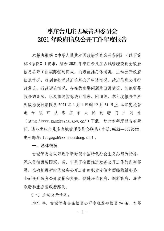 书刊名称:枣庄台儿庄古城管理委员会2022政府信息公开工作年度报告