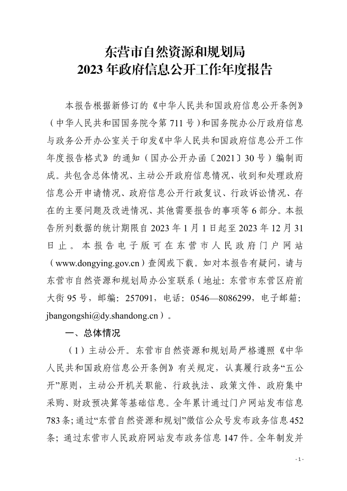 书刊名称:东营市自然资源和规划局2022年政府信息公开工作年度报告