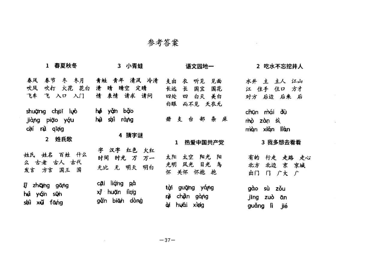 一年级语文答案