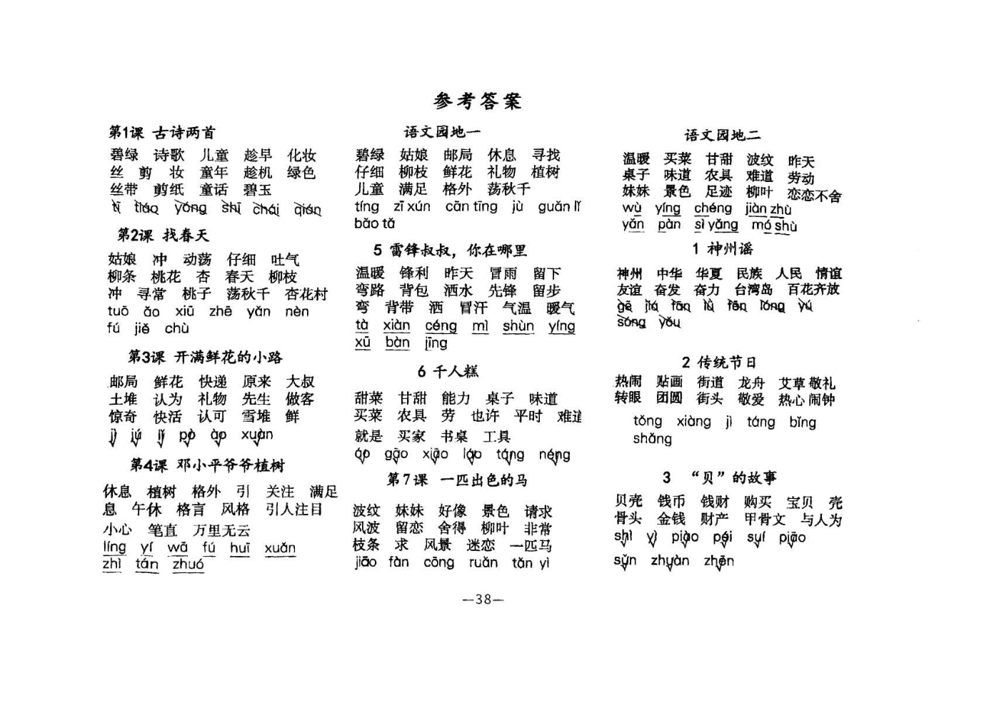 三年级下册语文答...