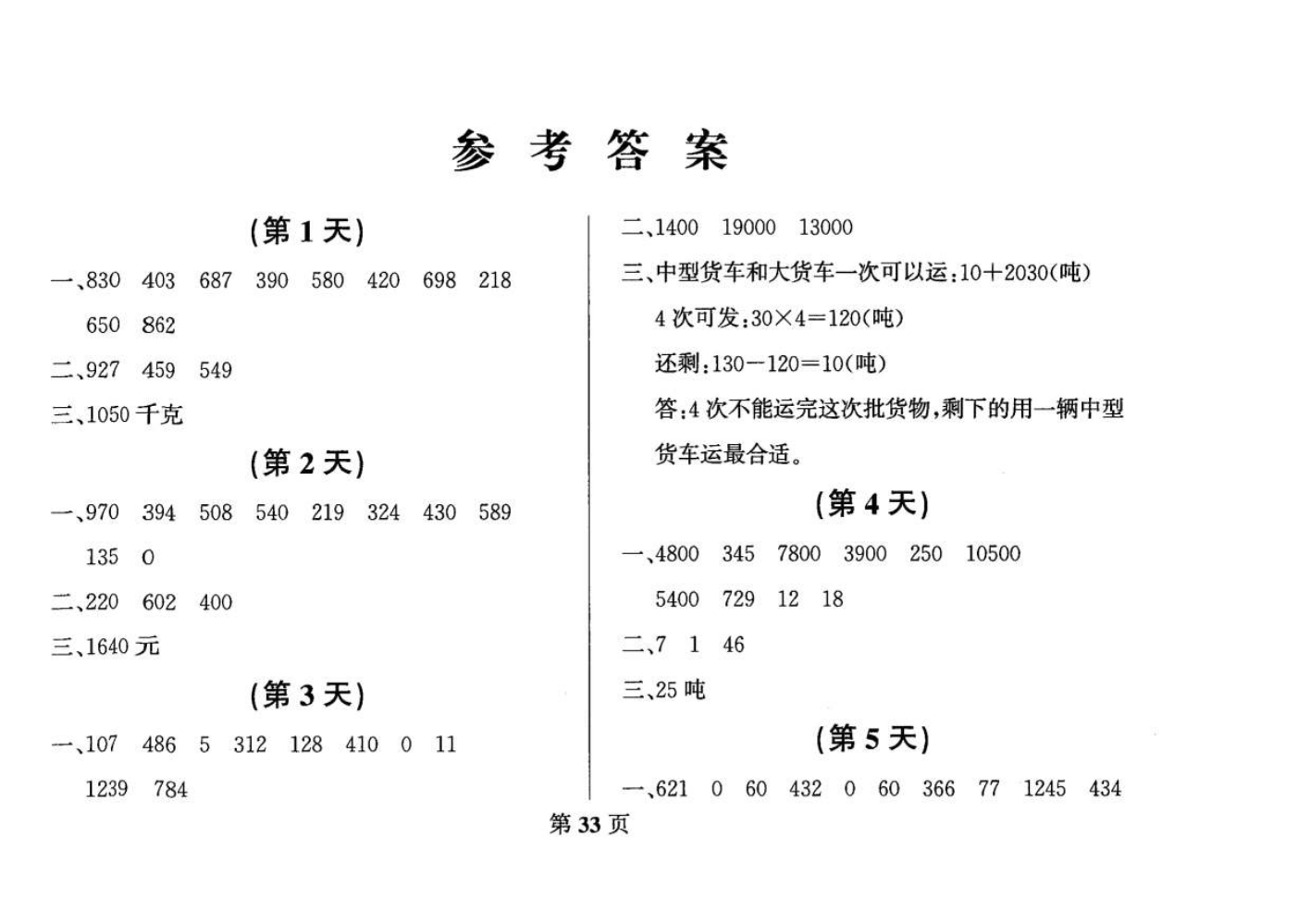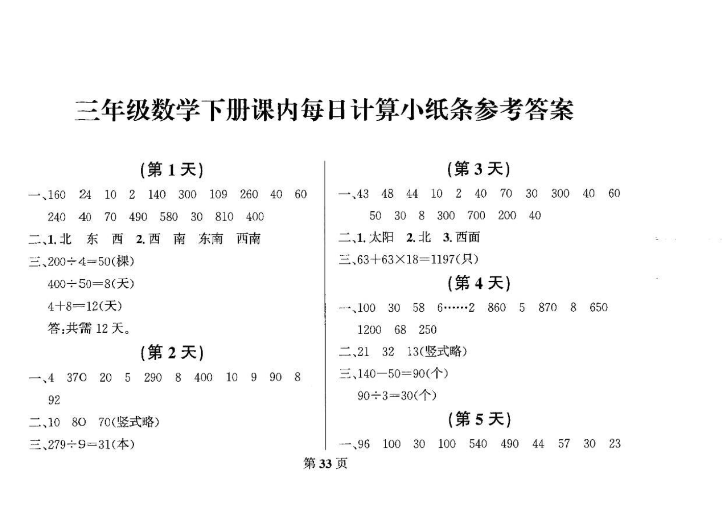 三年级下册数学答...