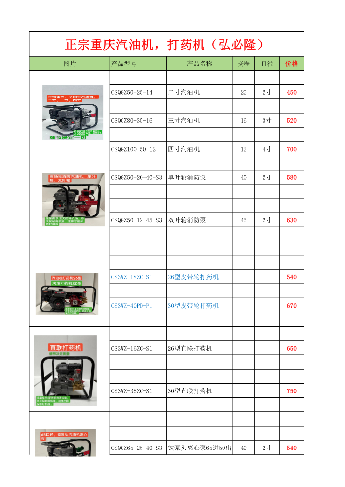 重庆弘必隆价格表
