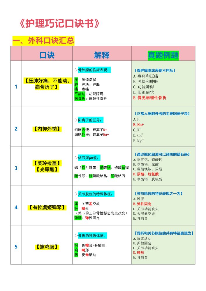 《护理巧记口诀书...
