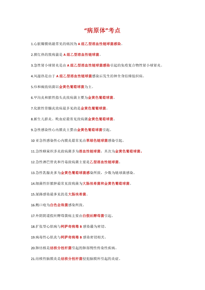 “病原体”考点