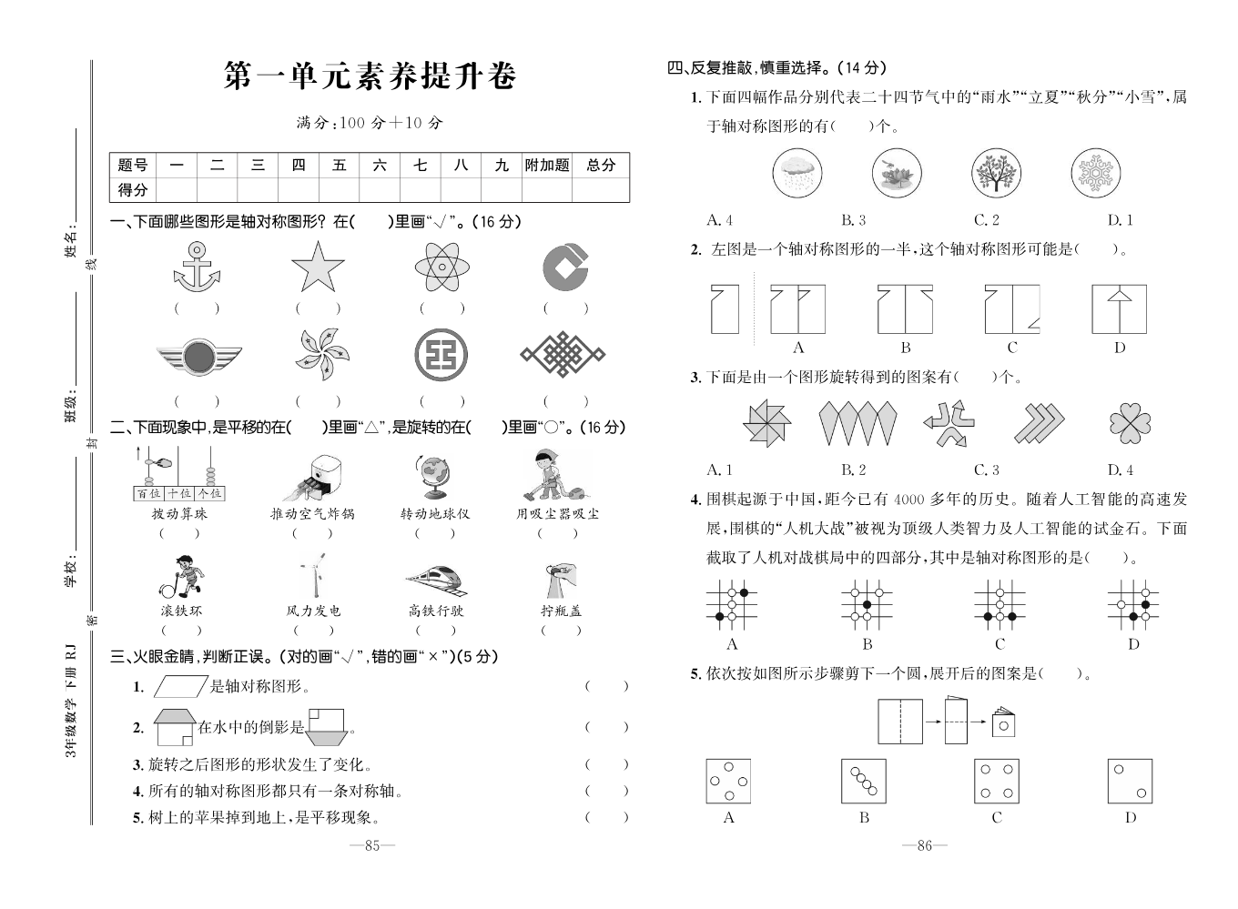 书刊名称:培优作业本·福建RJ一数下·素养测试卷