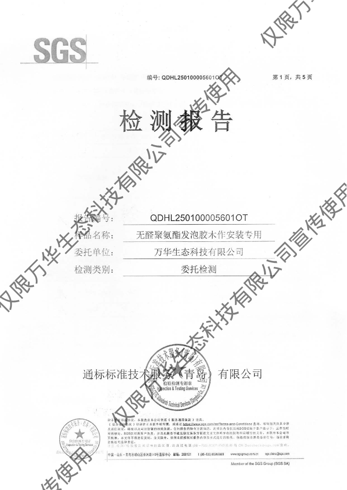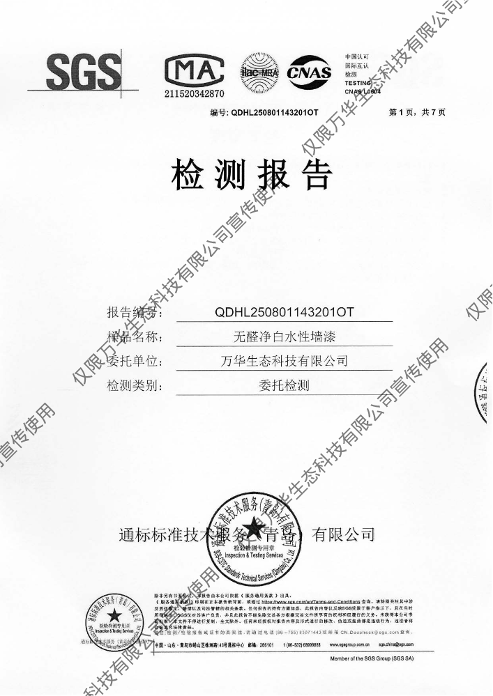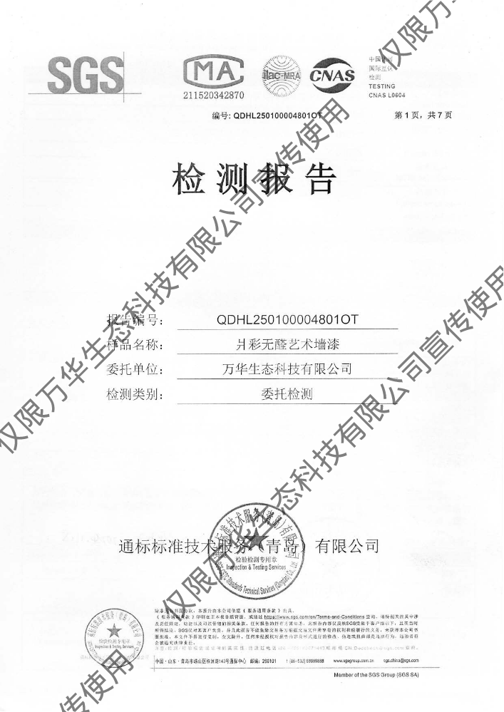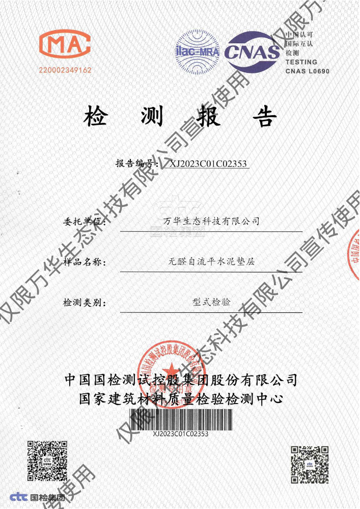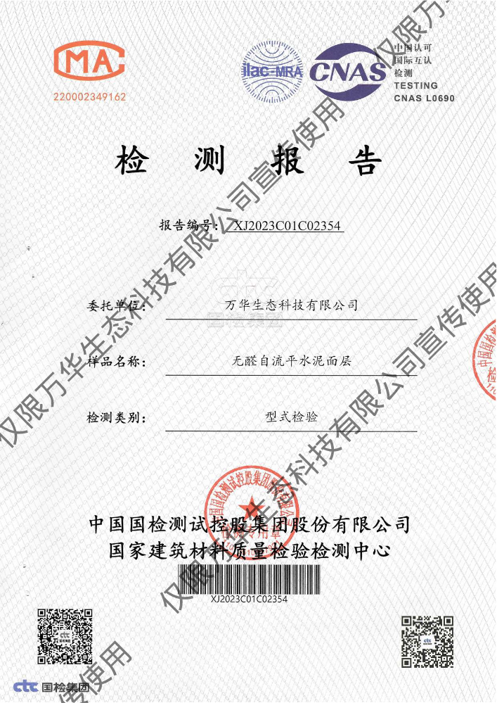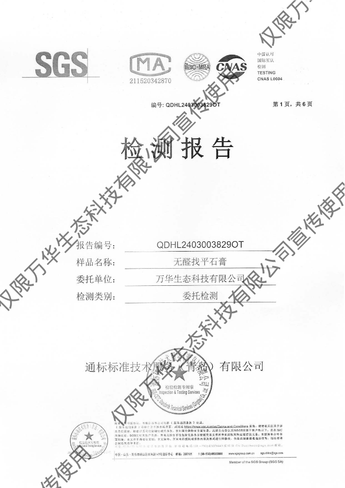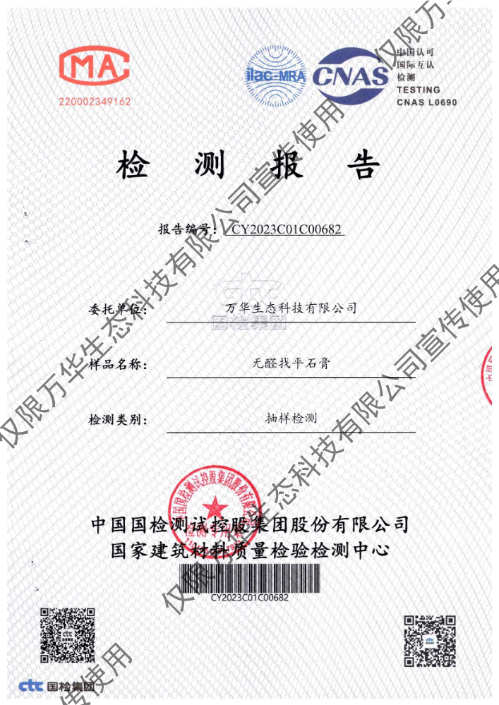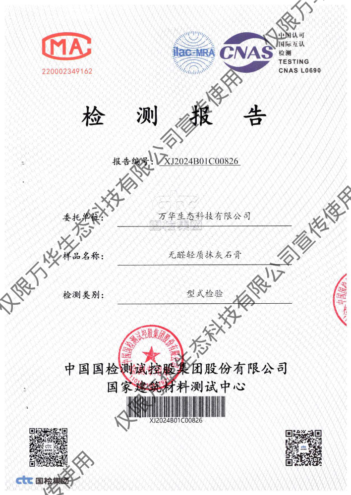 书刊名称:无醛轻质抹灰石膏环保检测报告
