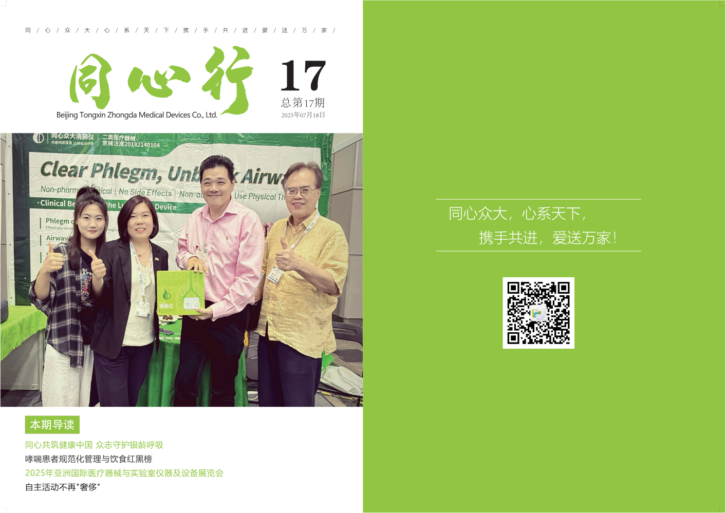 其他信息:《(已压缩)同心众大清肺仪第十七期内刊 37X26(出血3MM)》电子宣传画册作品由同心众大清肺仪于2025-10-17制作并发布于FLBOOK电子杂志制作平台。FLBOOK是一款HTML5电子杂志、电子书刊、电子画册制作平台,使用FLBOOK可以快速制作和发布电子书刊作品。