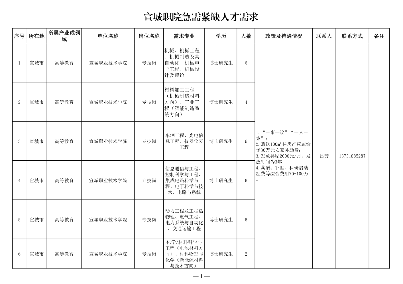 宣城职院急需紧缺...