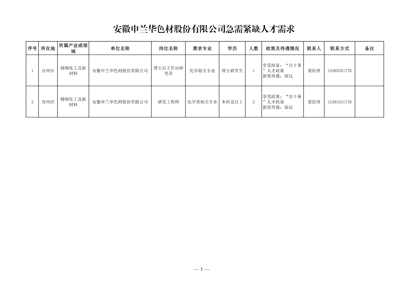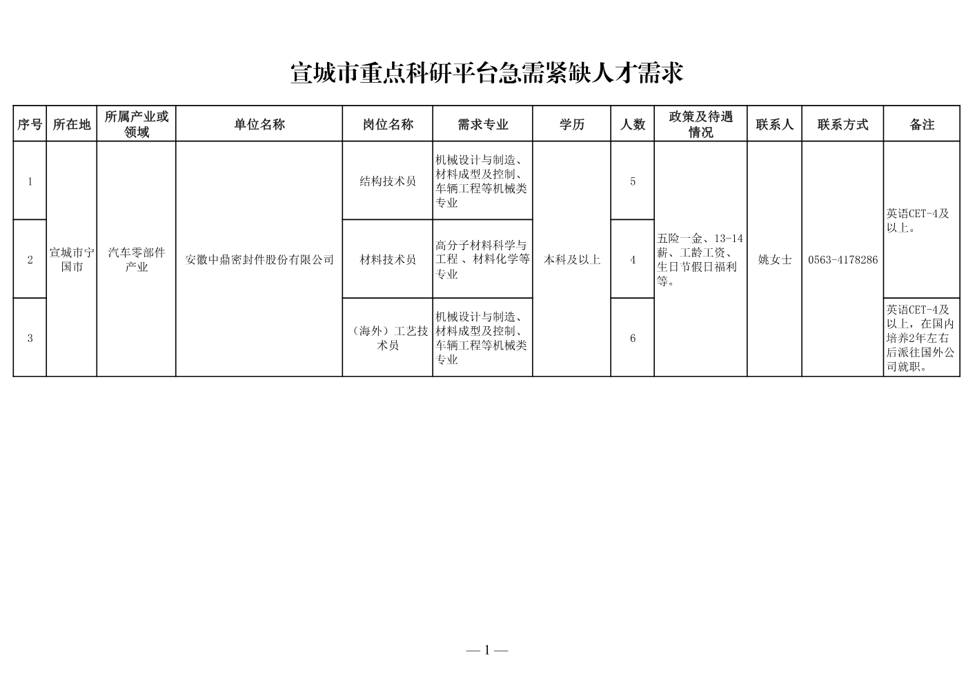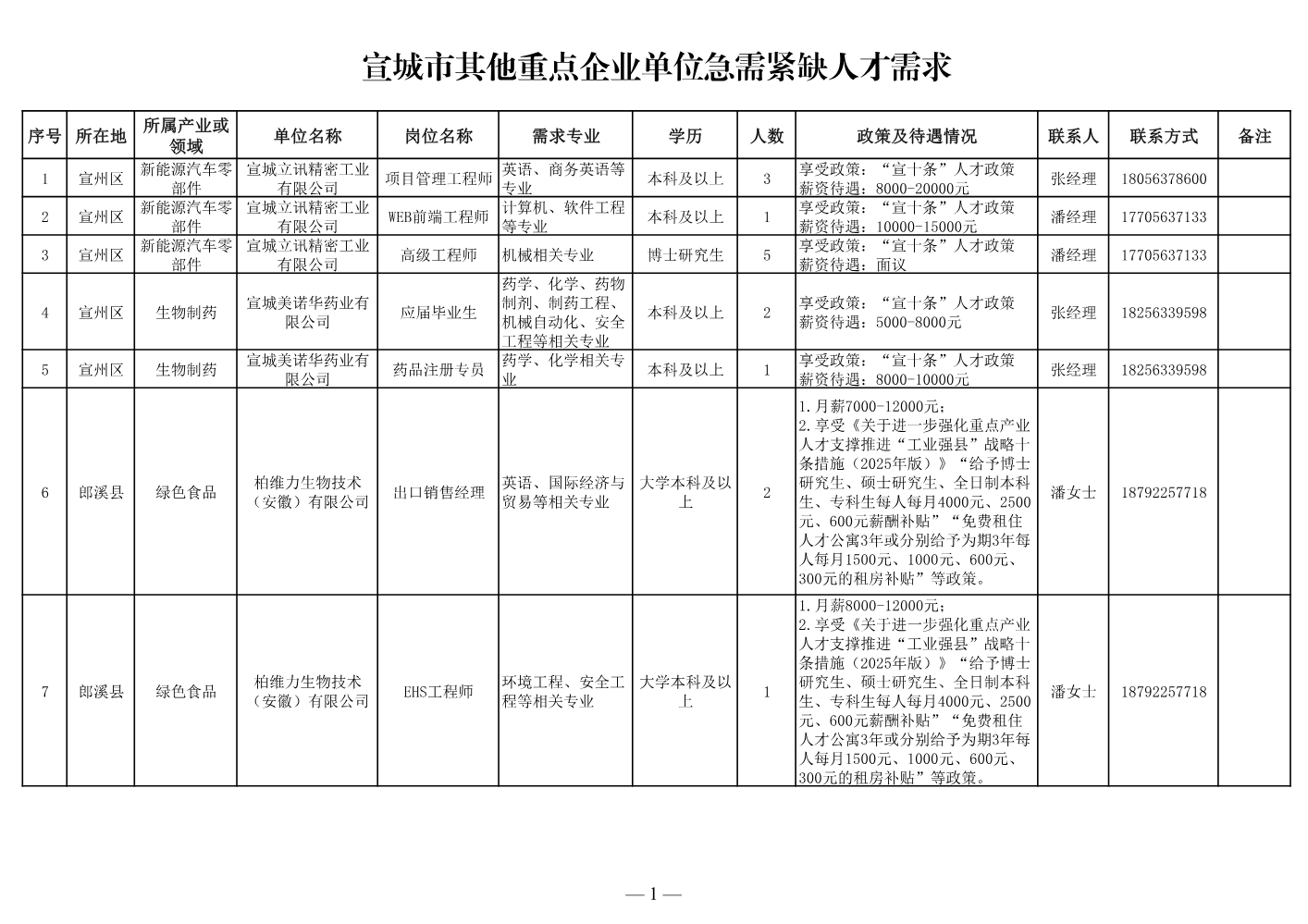 宣城市人才需求清...