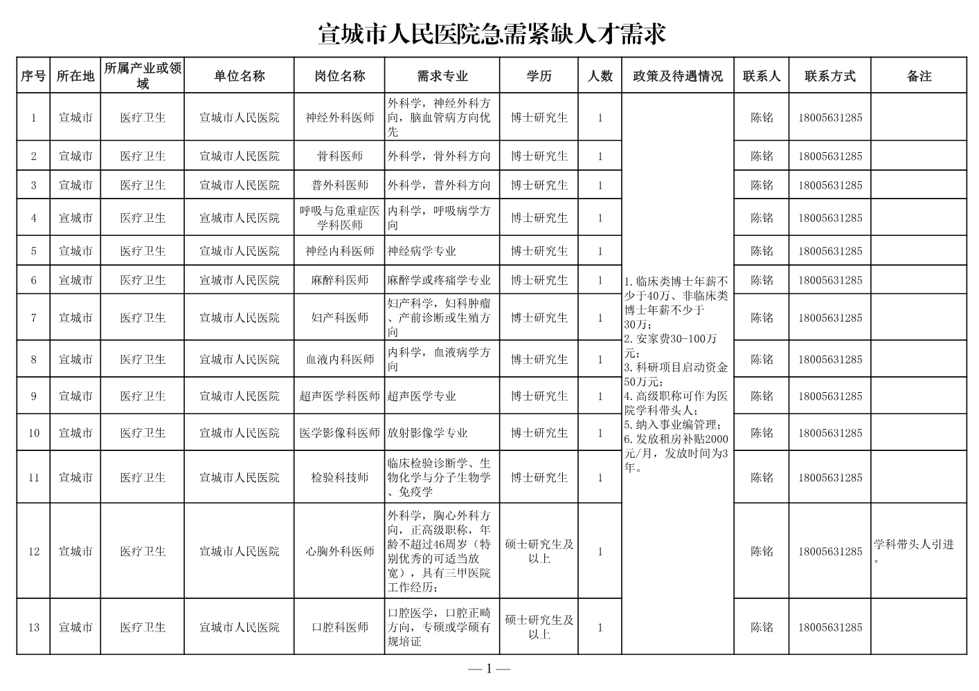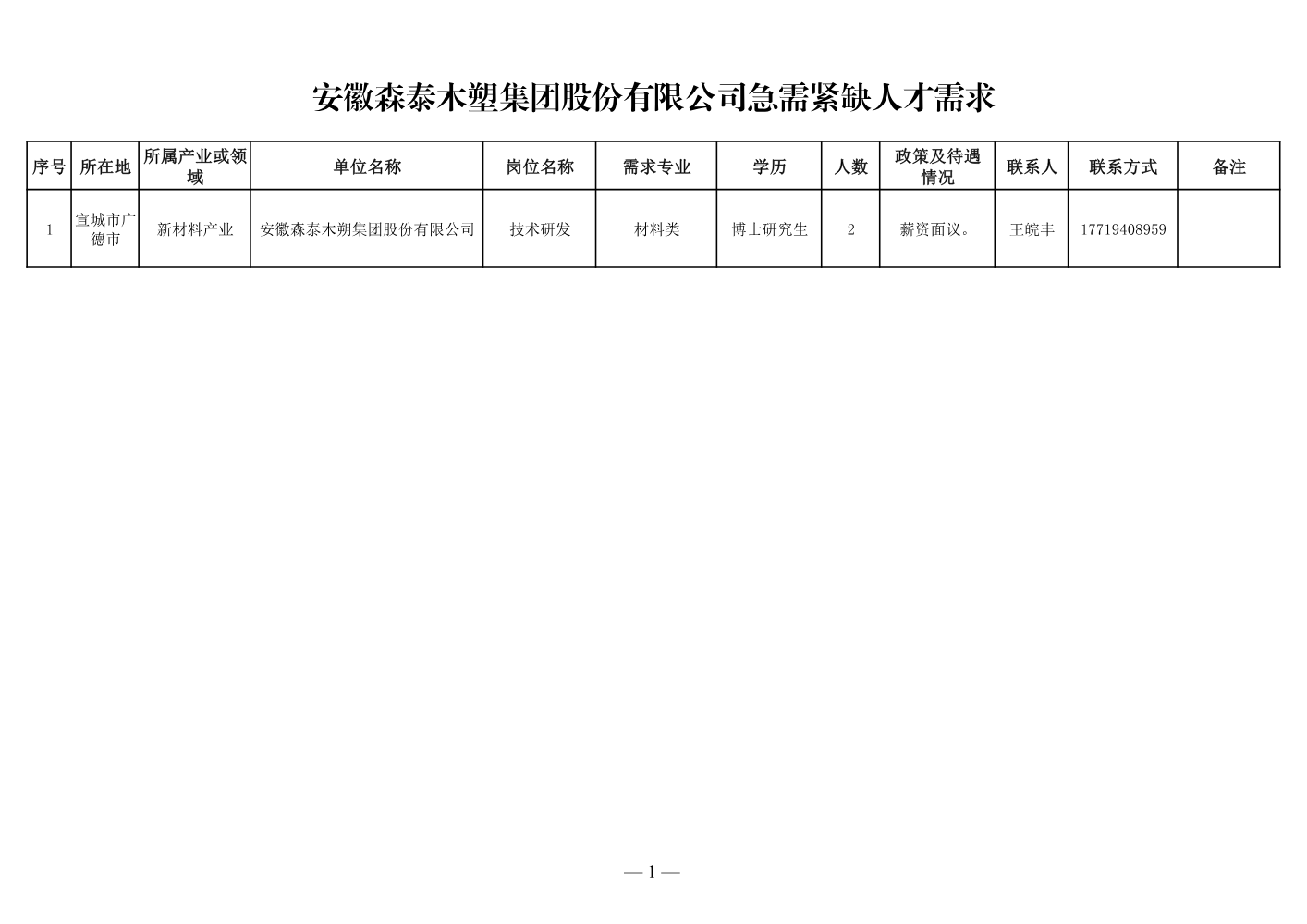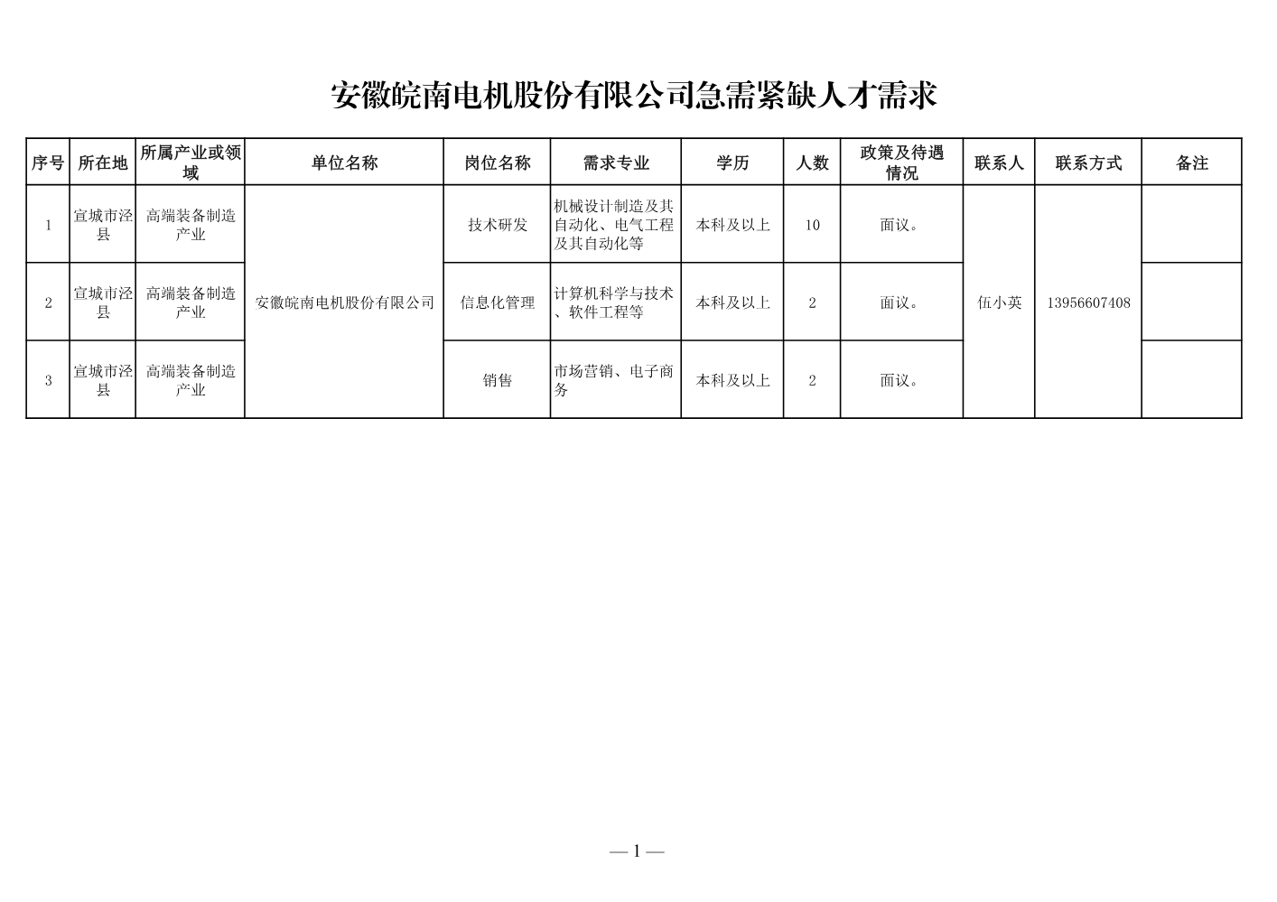 宣城市人才需求清...