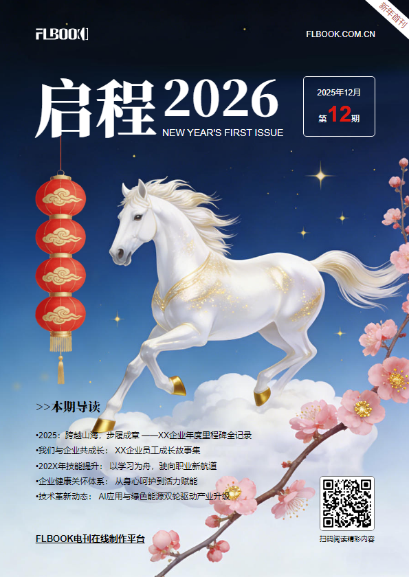 书刊简介:使用FLBOOK电刊平台制作新春画册通用模板,可替换文字和图片。