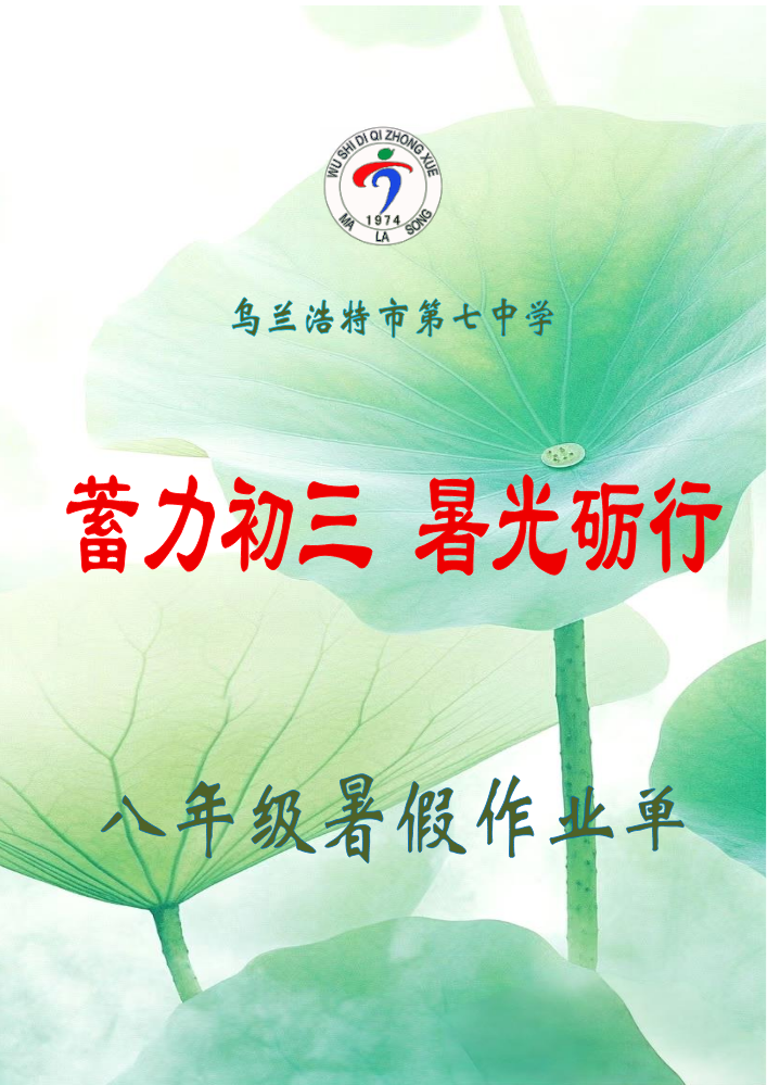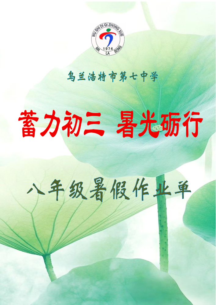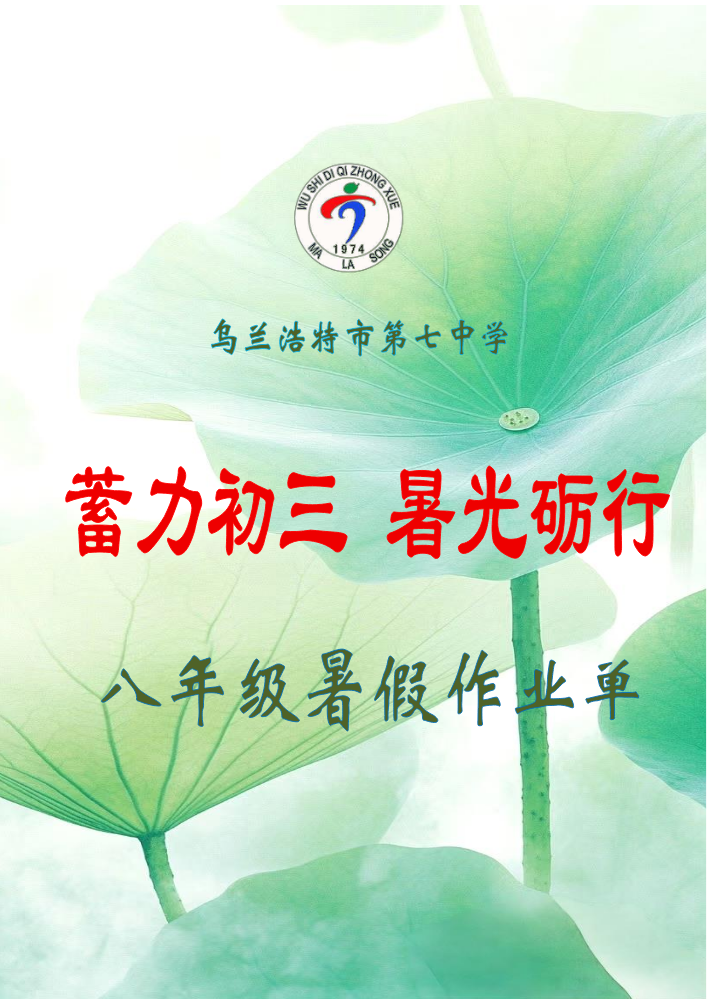 书刊名称:乌兰浩特市第七中学七年级暑假作业