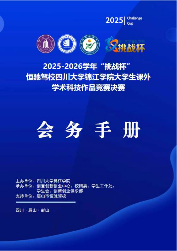 书刊简介:2025-2026学年“挑战杯恒驰驾校四川大学锦江学院大学生课外学术科技作品竞赛决赛会务手册