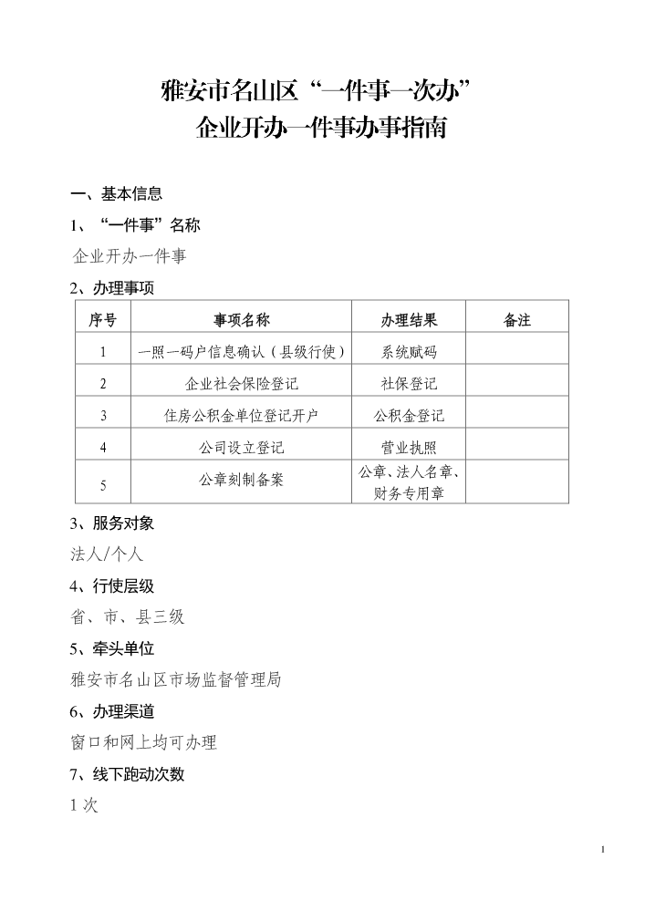 企业开办一件事办...