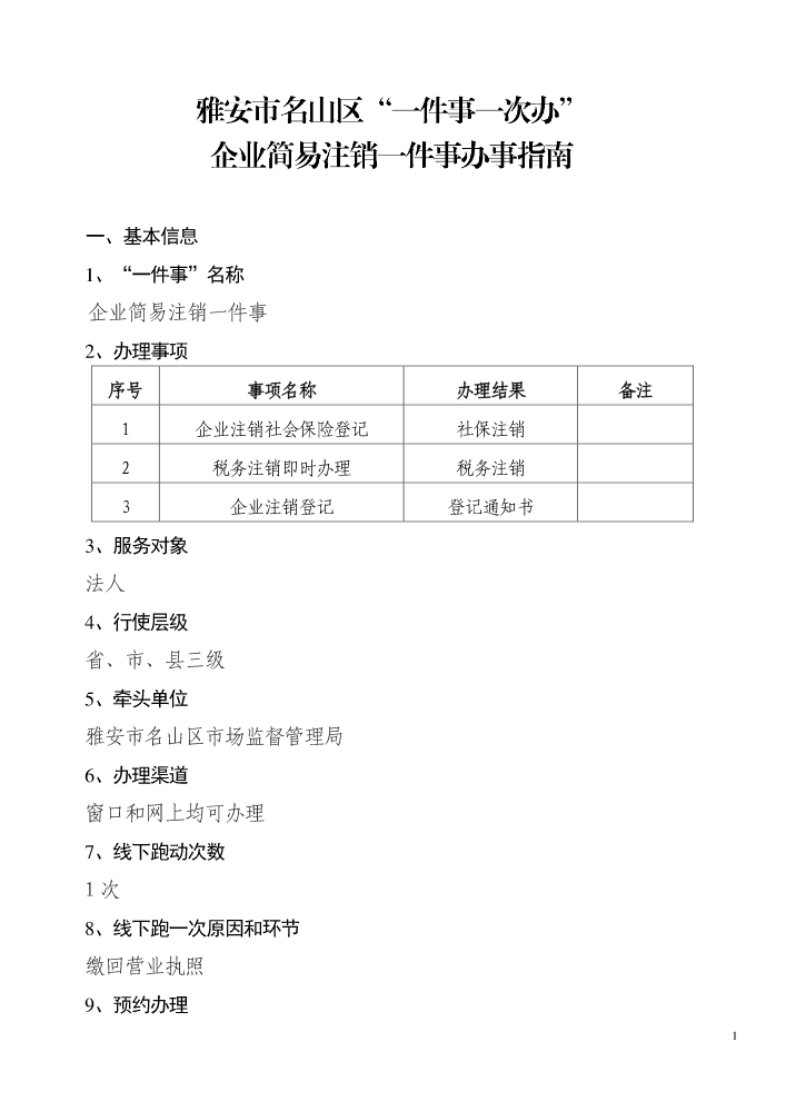 企业简易注销一件...