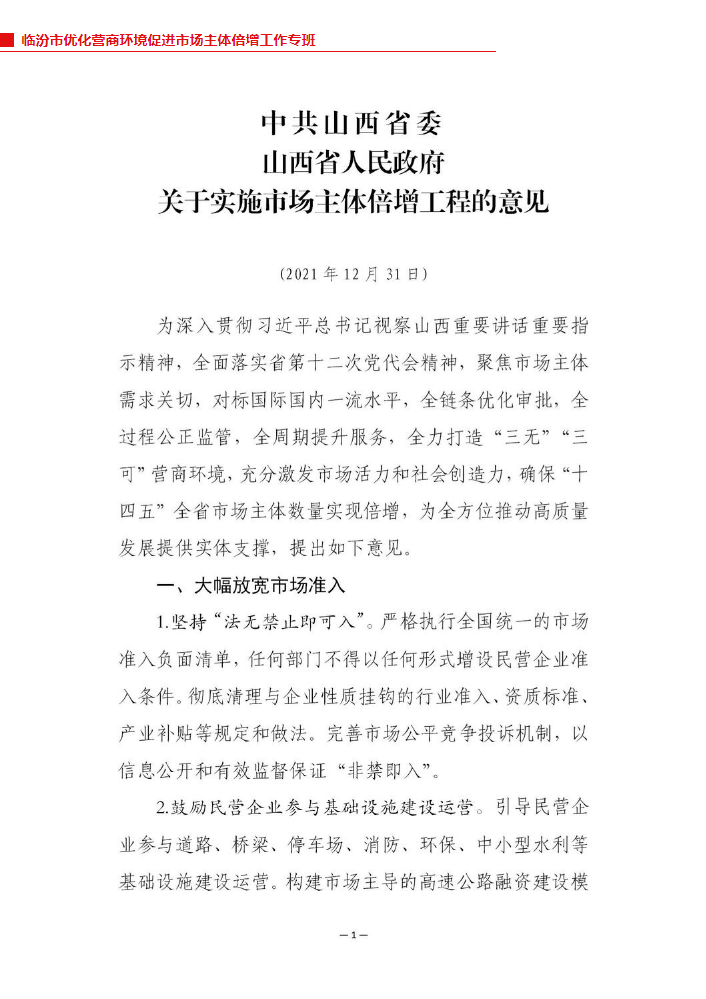 关于印发临汾市政...