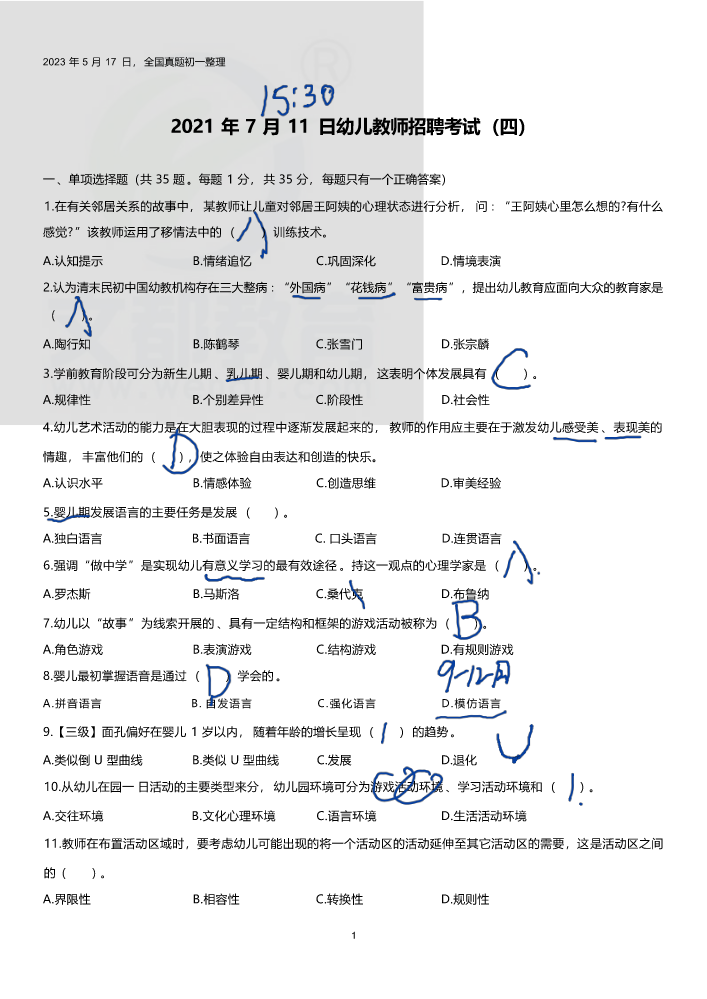 书刊名称:2023年菏泽幼儿模拟卷五套(答案)