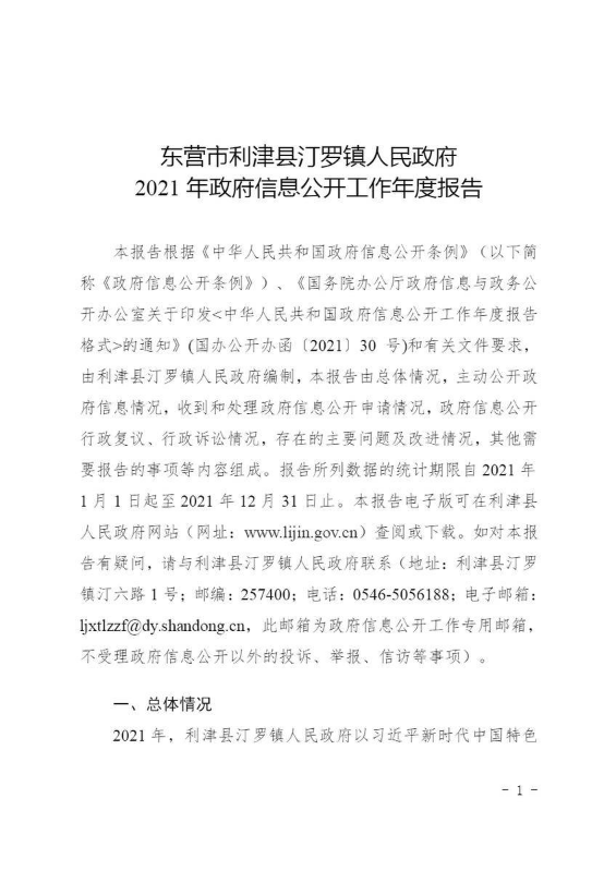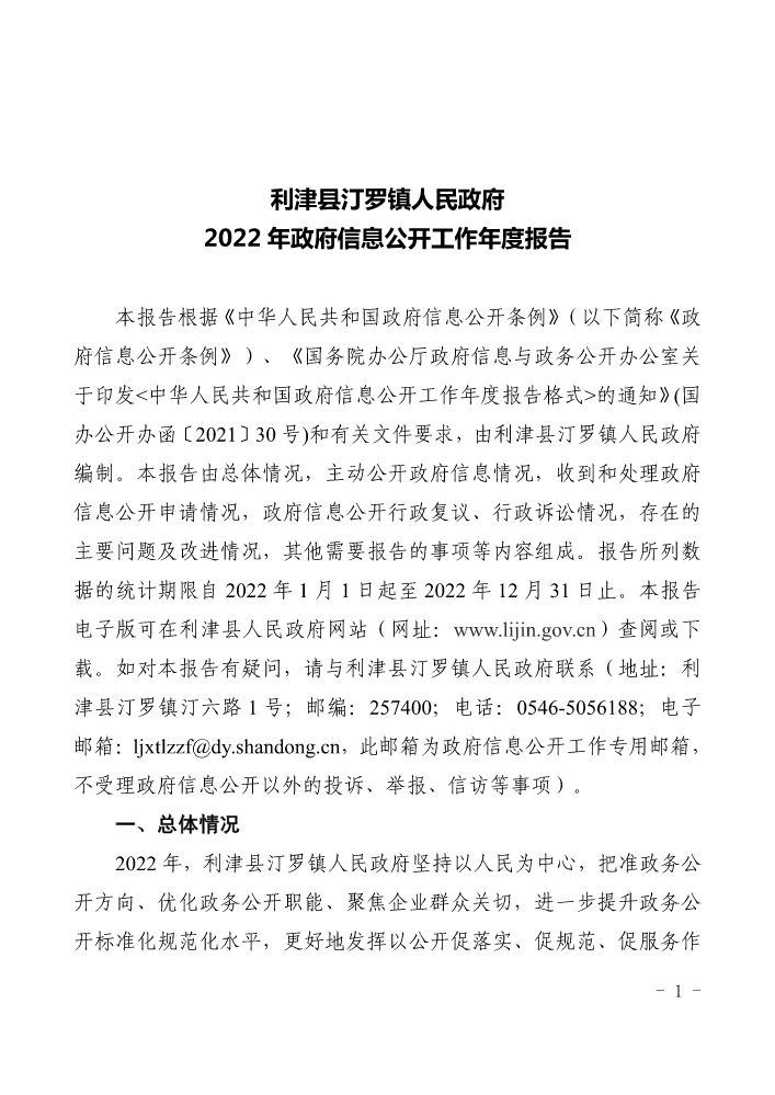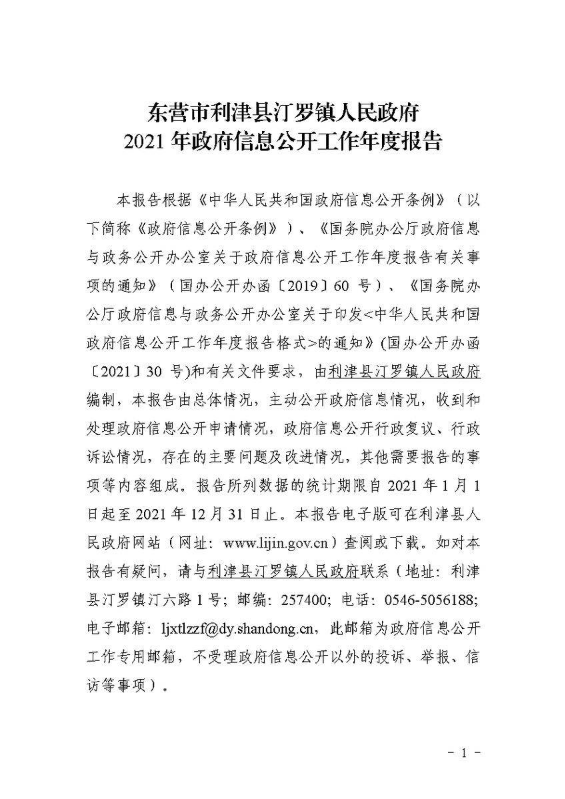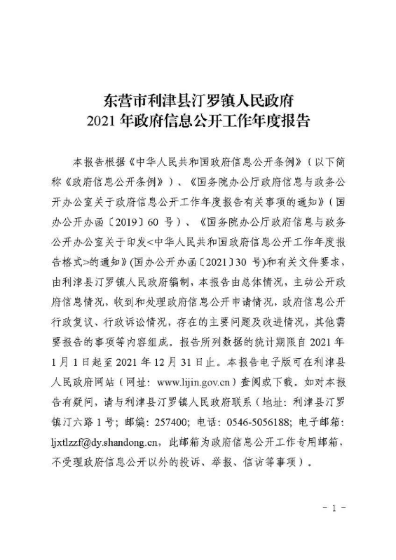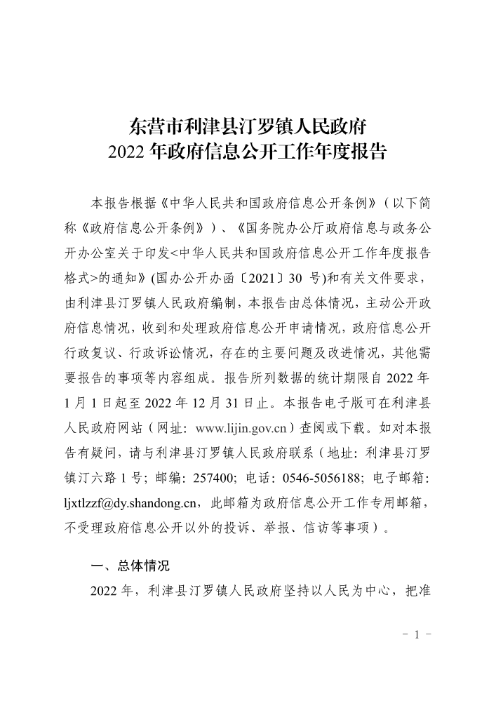 书刊名称:东营市利津县汀罗镇人民政府2022年政府信息公开工作年度报告