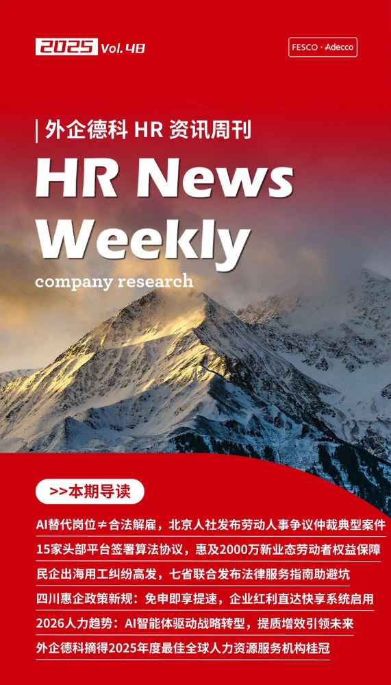 书刊名称:FESCO Adecco HR News Weekly11月第3周(四川)
