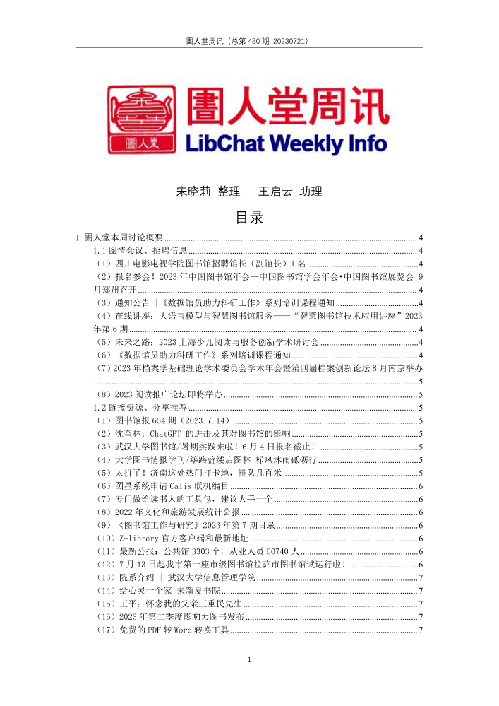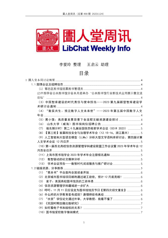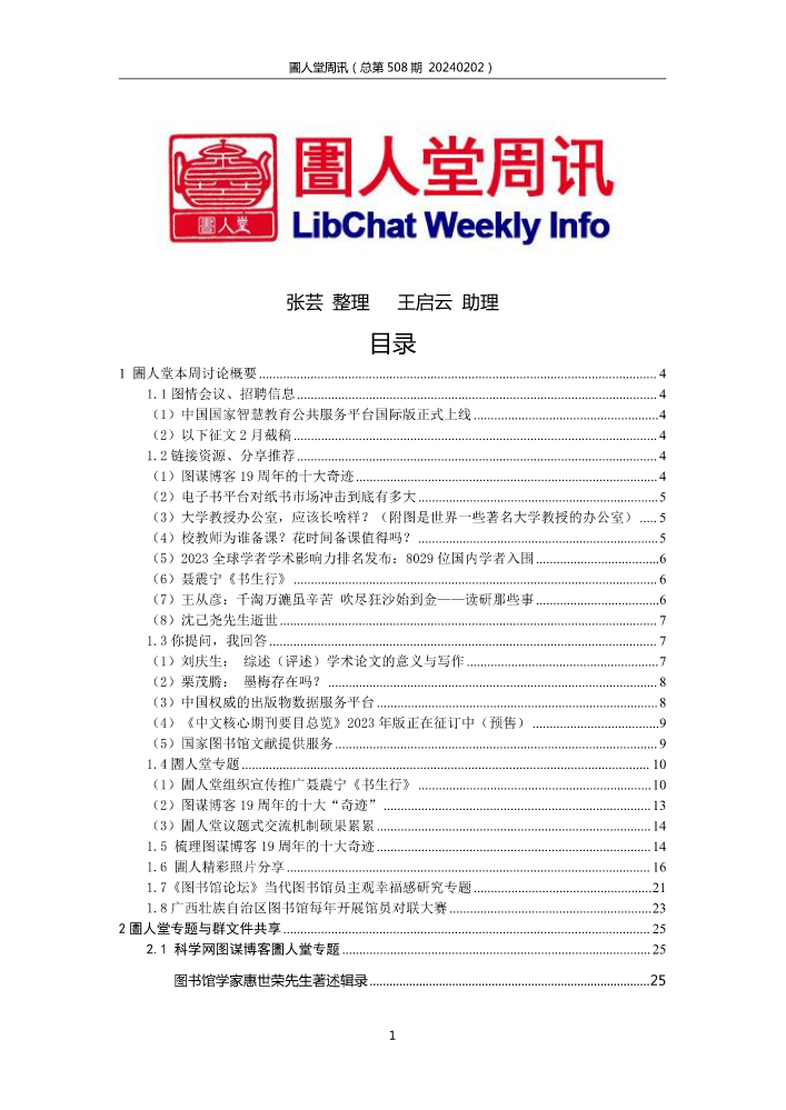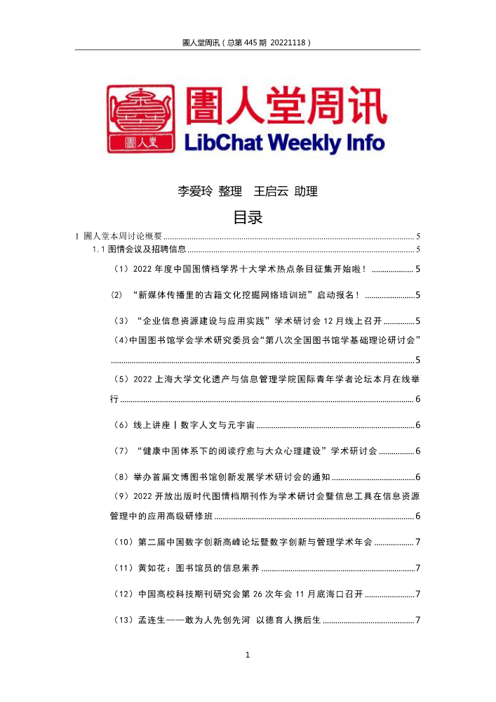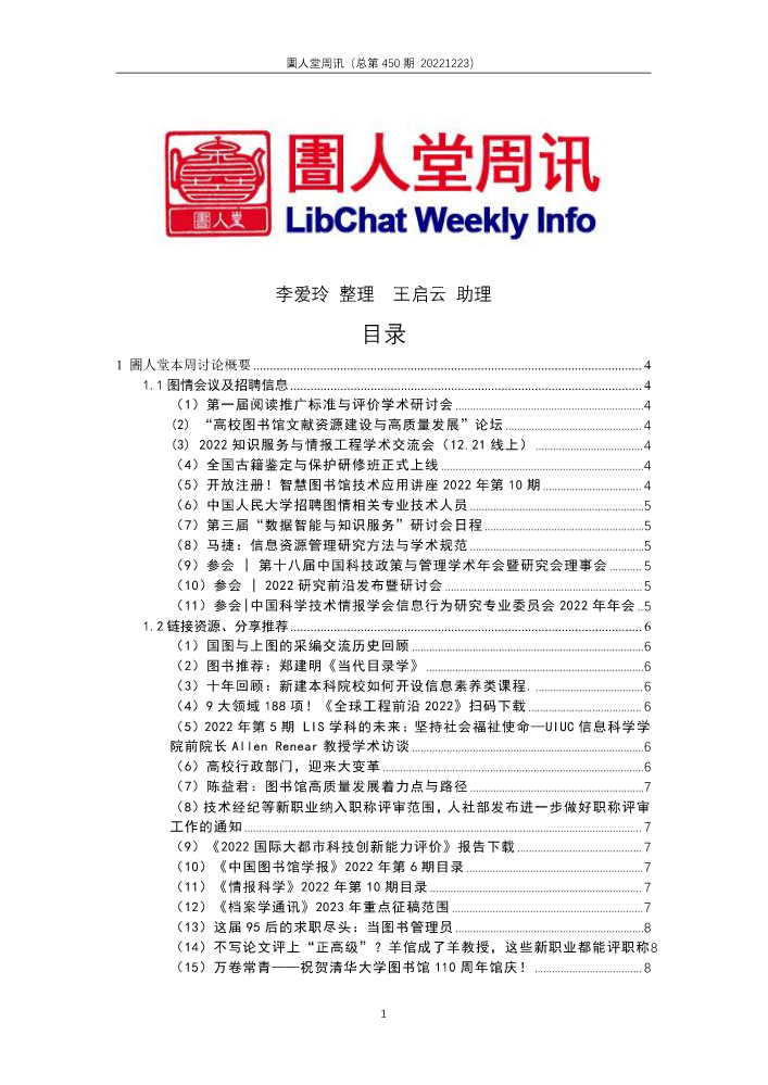 书刊名称:圕人堂周讯(总第455期 20230127)