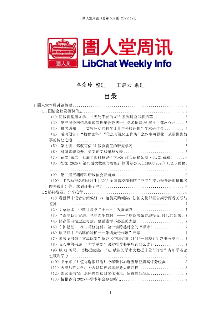 书刊名称:圕人堂周讯(总第567期 20250321)