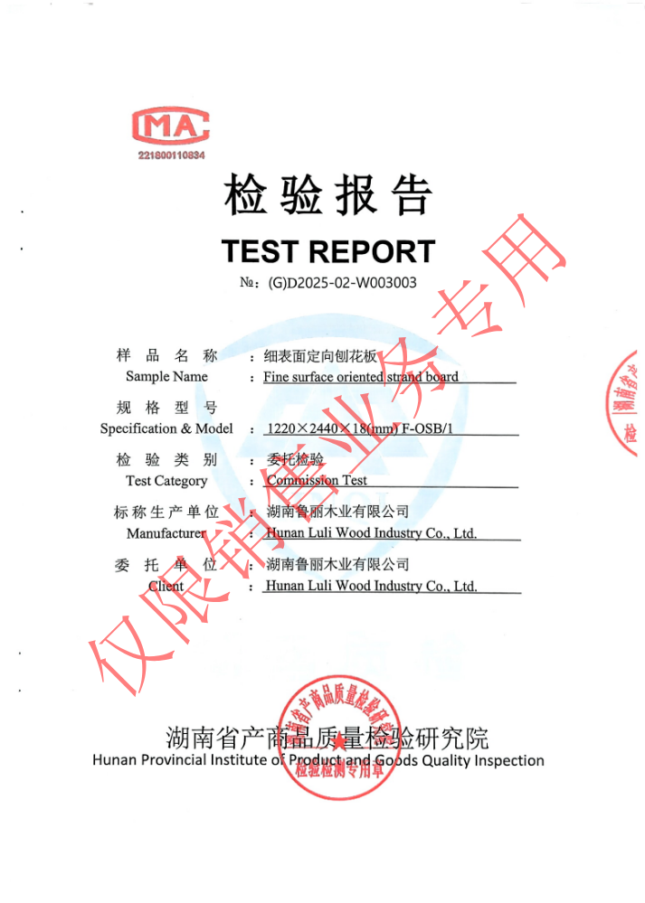 鲁丽精板检测报告