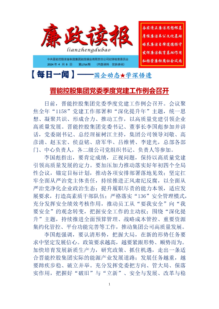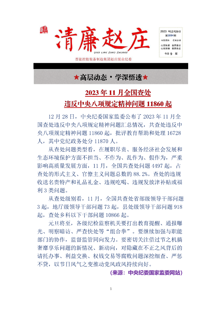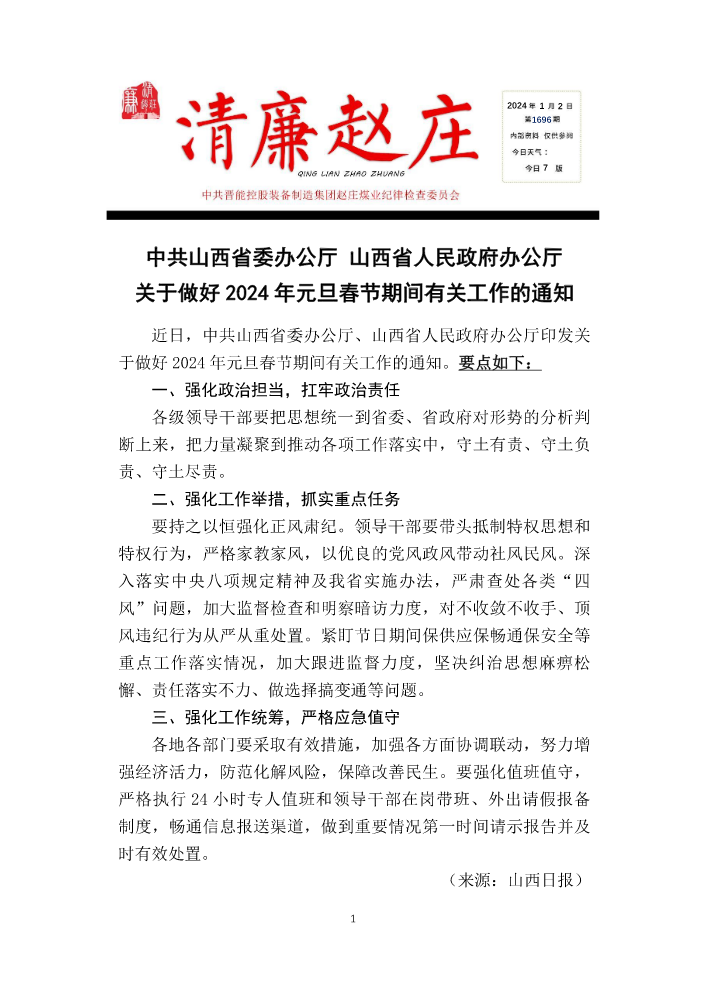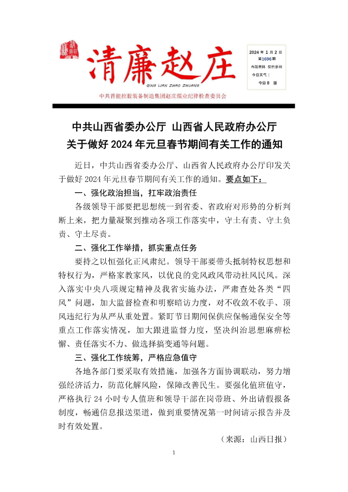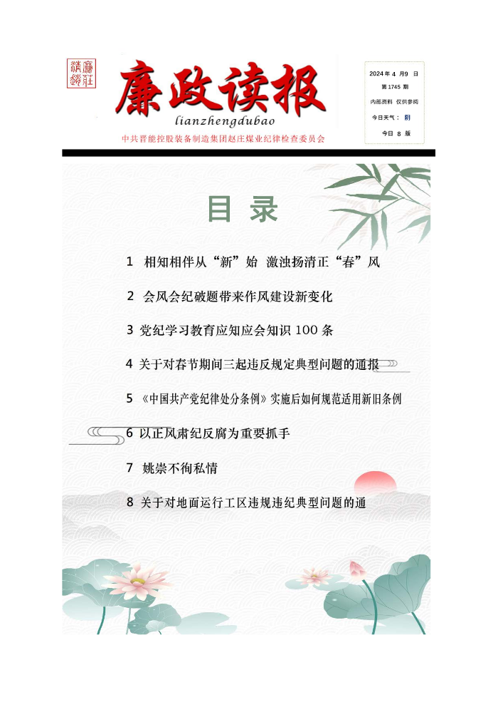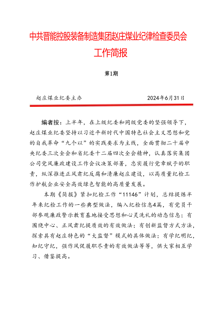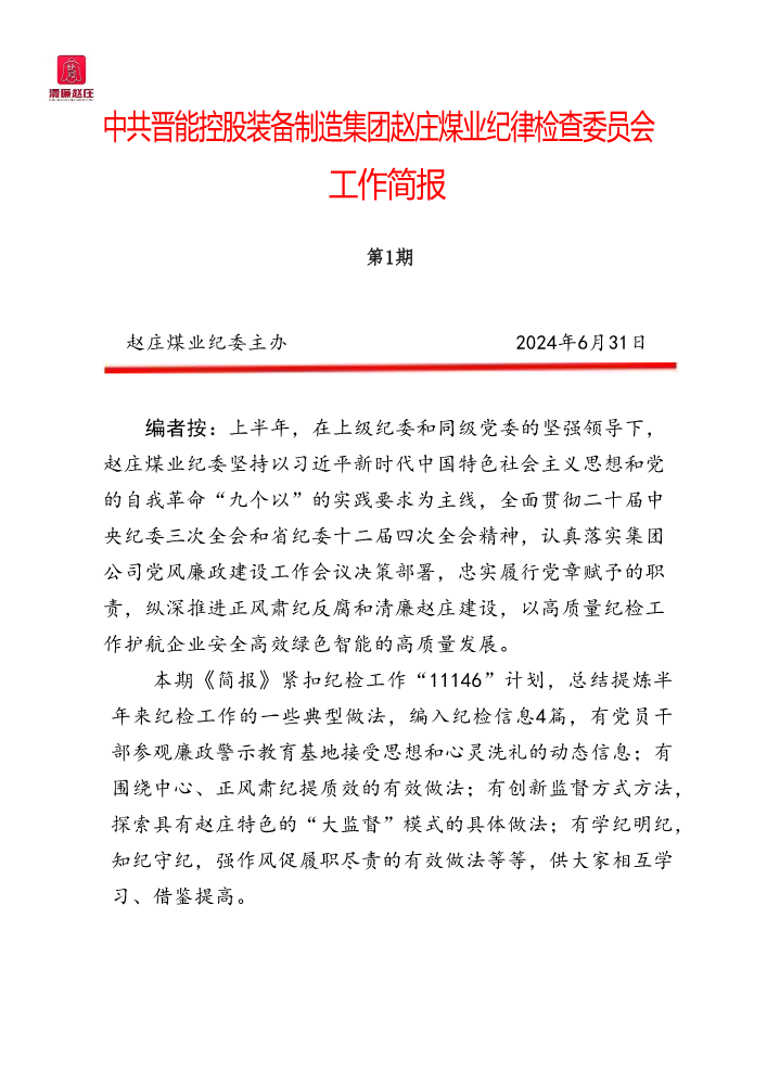 书刊名称:赵庄煤业纪检工作简报(〔2024〕(第1期)