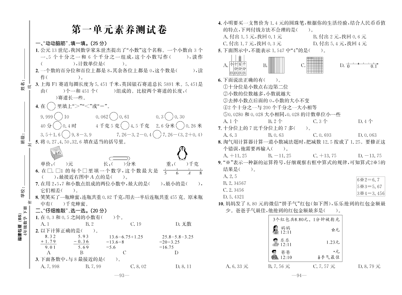 PEP四英上试卷