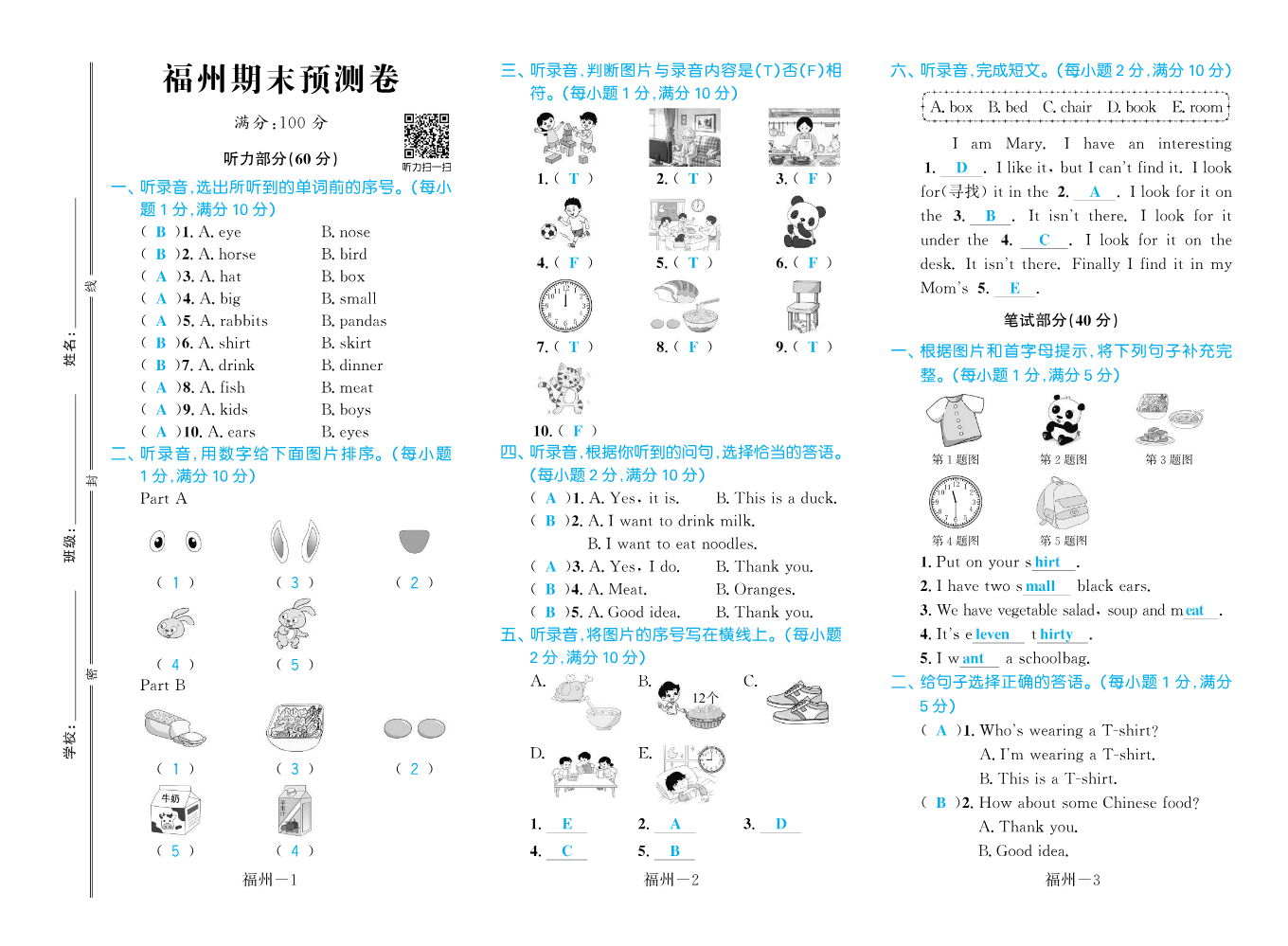 培优作业本闽教三...