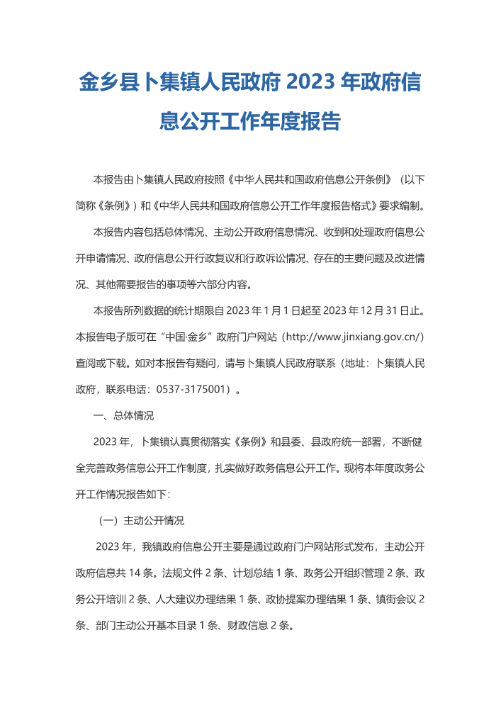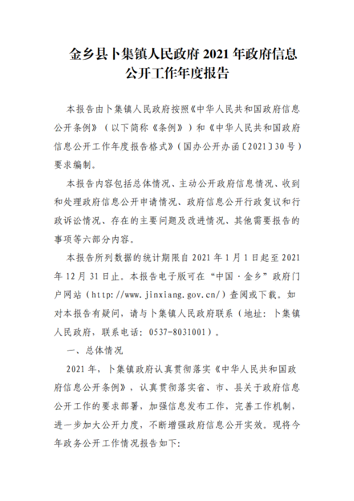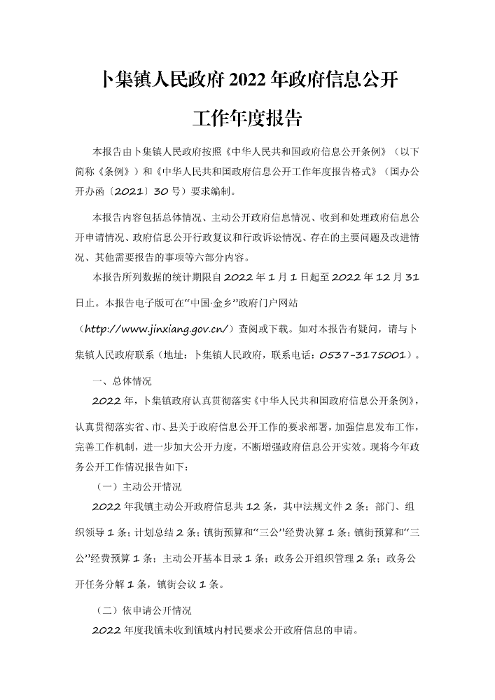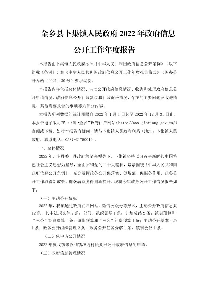 书刊名称:【电子书解读】卜集镇人民政府2022年政府信息公开工作年度报告