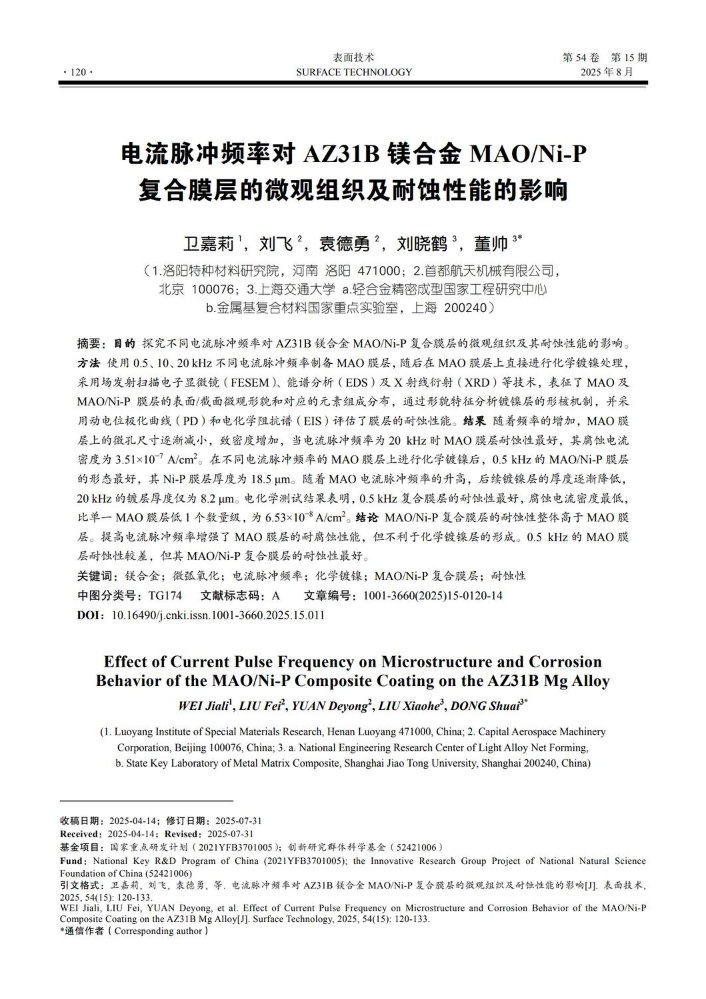 发布作者:《表面技术》