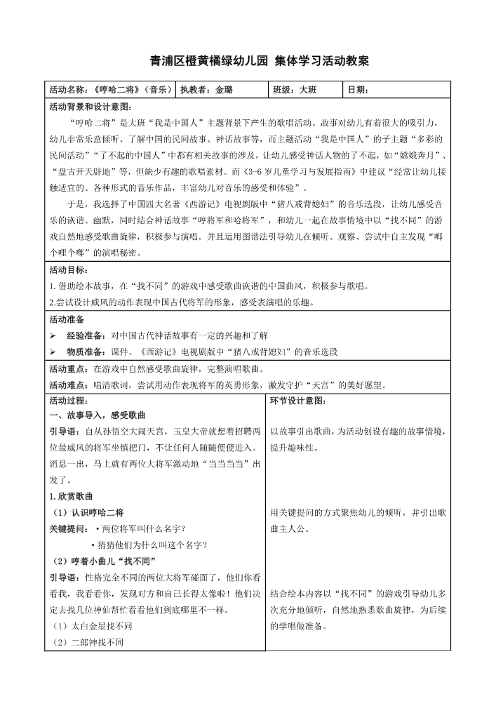 朱家角二幼课程计...