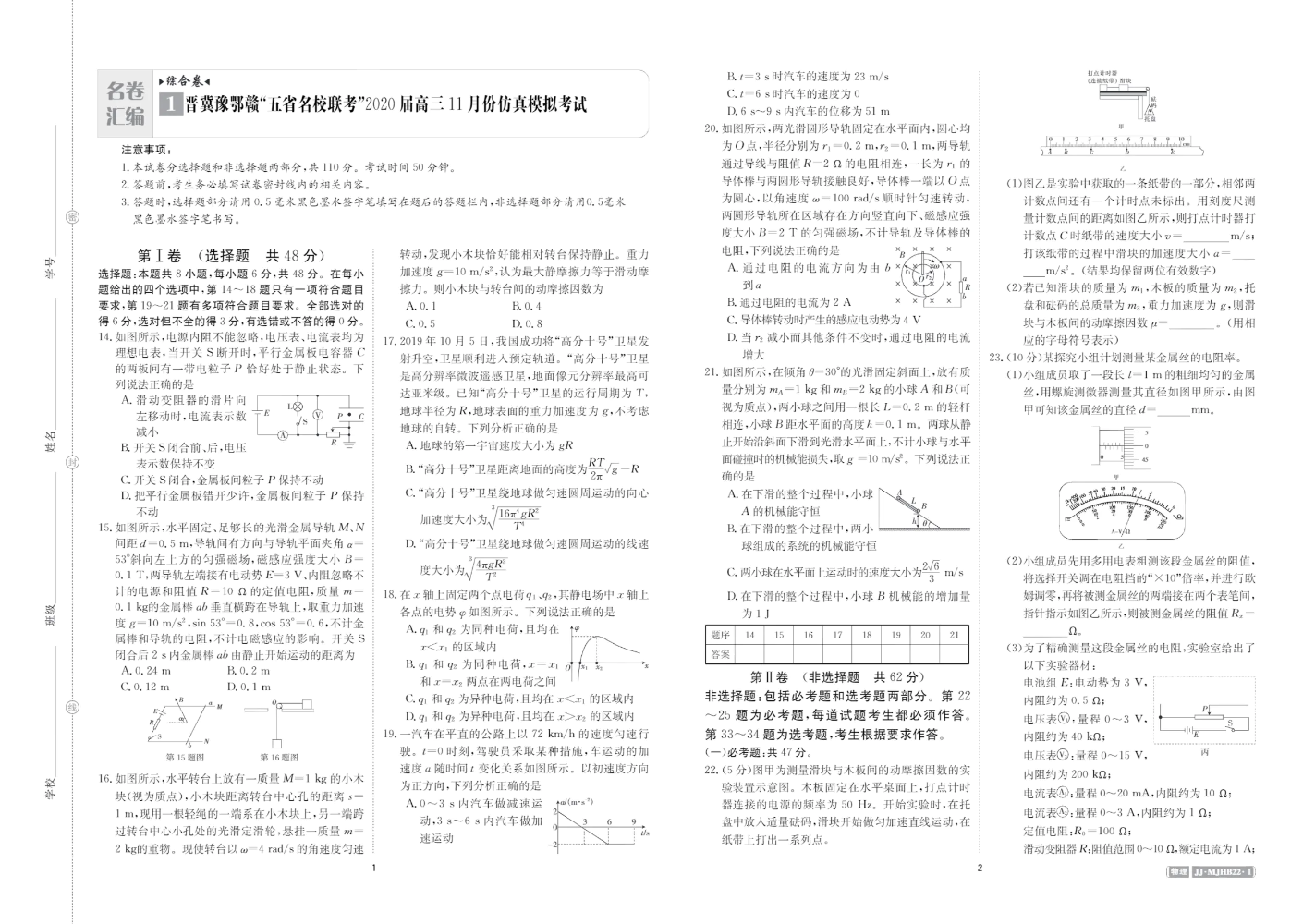 书刊简介:本卷来自江西金太阳教育近1年为全国各学校单独命制的试卷、为各省命制的省级大联考试卷、倾力打造的百万大联考试卷。