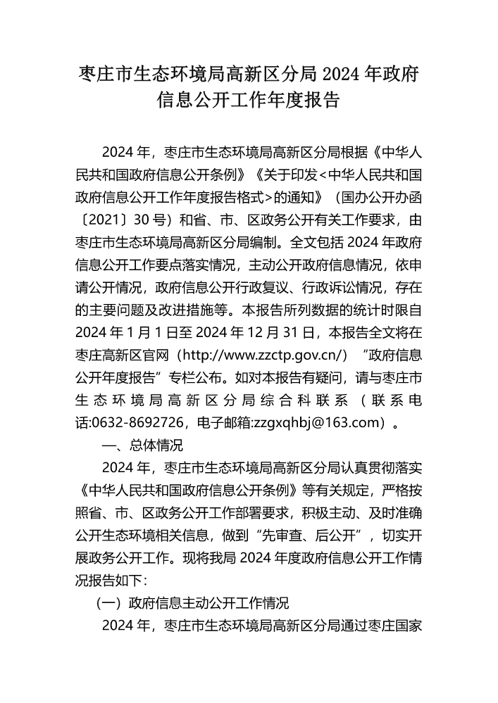书刊简介:枣庄市高新区社会事务综合服务中心2024年政府信息公开工作年度报告