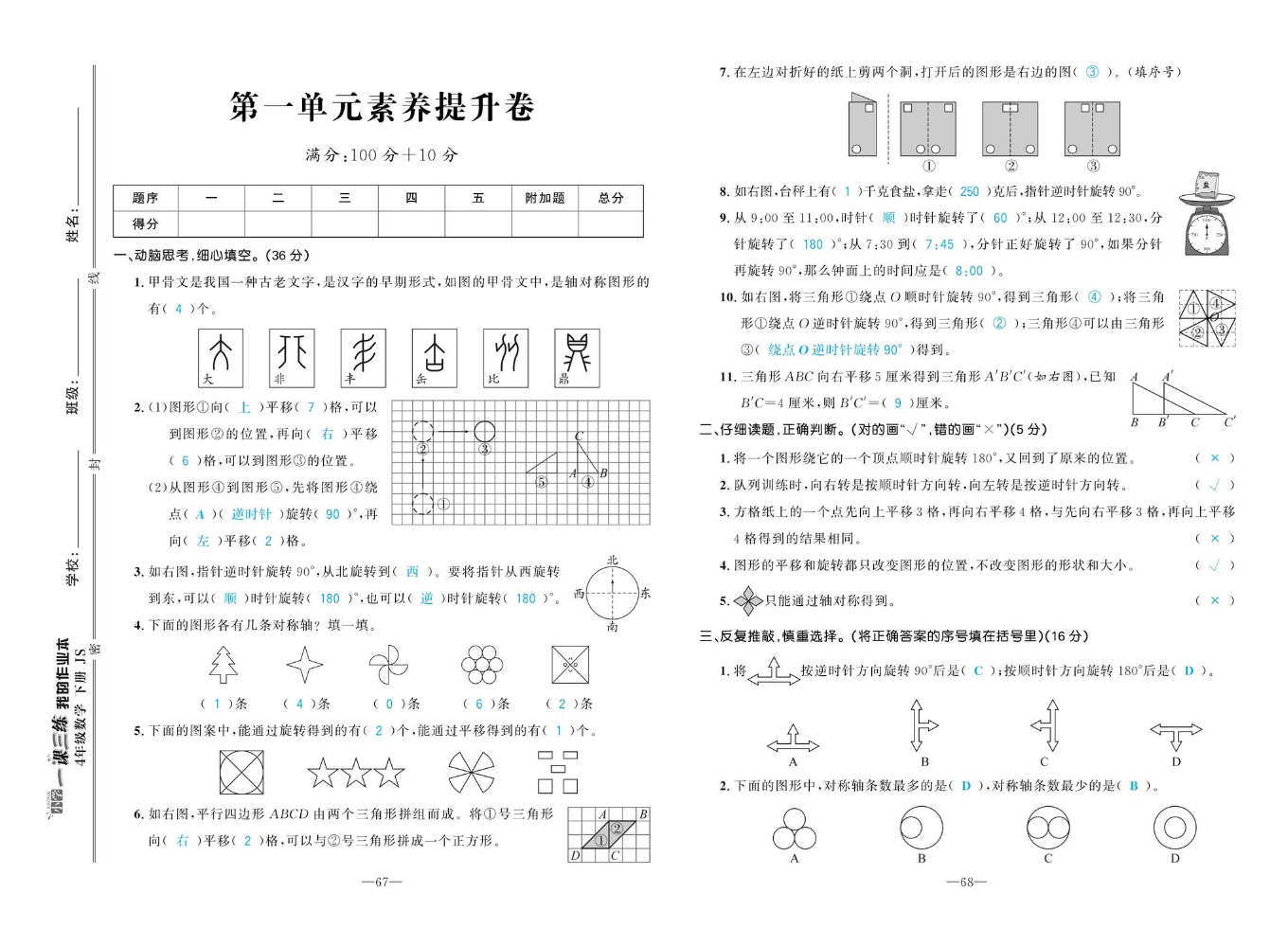 我的作业本苏教4...