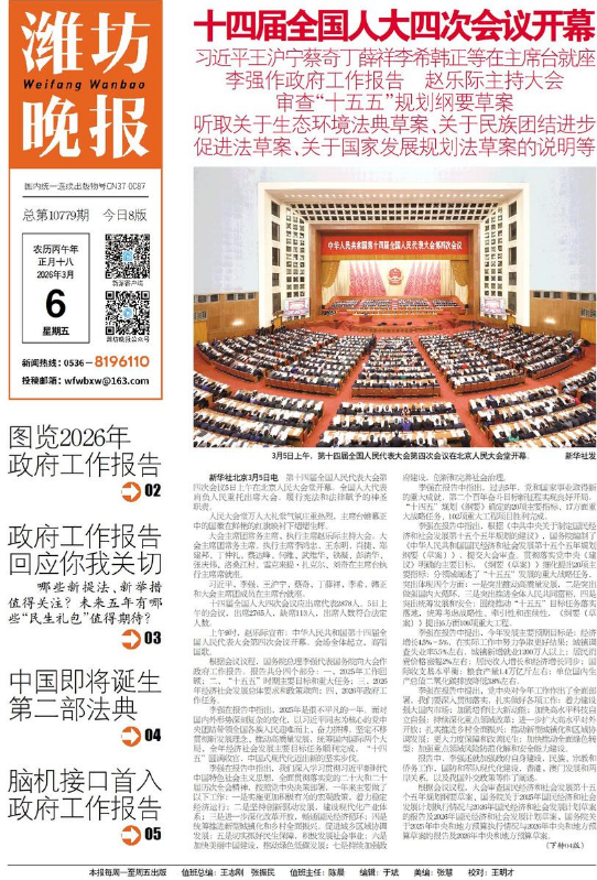 其他信息:《潍坊晚报3.10电子报》电子宣传画册作品由FLBOOK会员于2026-03-09制作并发布于FLBOOK电子杂志制作平台。FLBOOK是一款HTML5电子杂志、电子书刊、电子画册制作平台,使用FLBOOK可以快速制作和发布电子书刊作品。