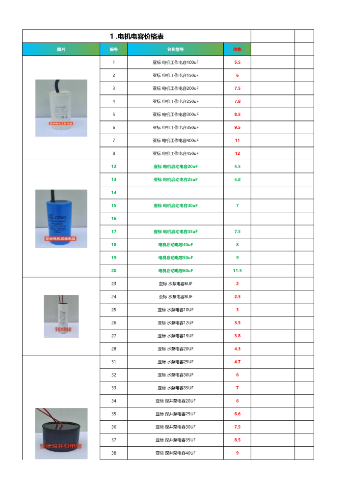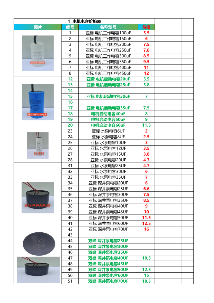 书刊名称:电容 电线 汽油机价格表
