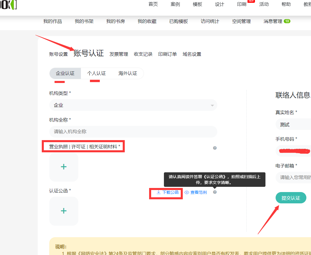 什么是认证公函?进入自己账号后,进入认证账号界面里,点击上图介绍里的的下载按钮,可下载填写后拍照上传。