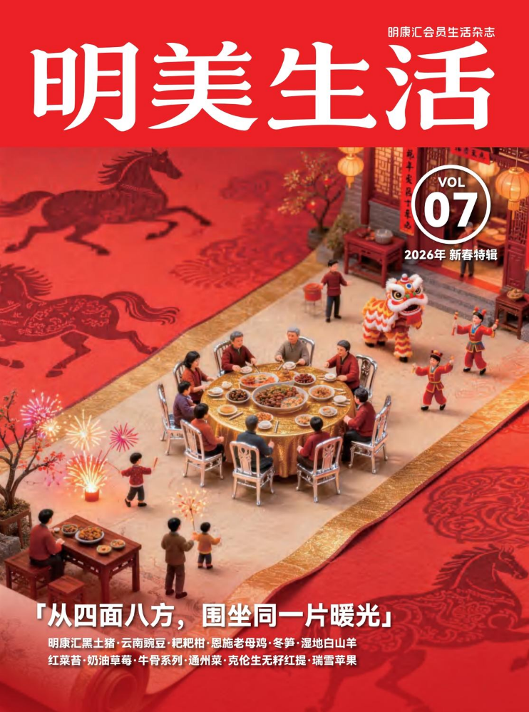 明美生活(下称“本杂志”)由明康汇生态农业集团有限公司(下称“本公司”)发放,属于内部手册。本杂志的所有内容,包括本杂志中的评论 、意见或声明,均系作者个人观点,不代表本公司或其所属人员的立场,且有关商品及服务的信息及图片仅供参考,如本杂志与门店所陈列的商品及服务存在差异(包括但不限于商品及服务的包装、数量、外观、颜色及其他信息),本公司对此差异恕不负责。