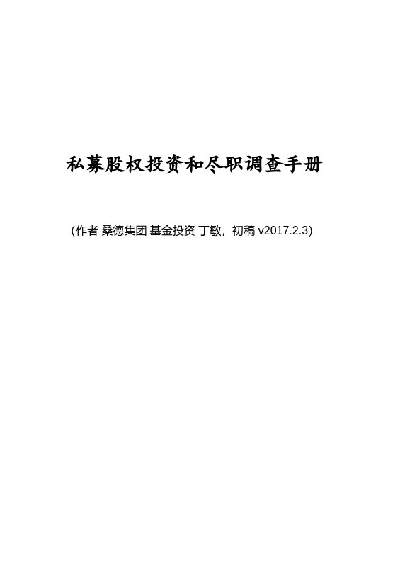 私募股权投资和尽职调查手册
