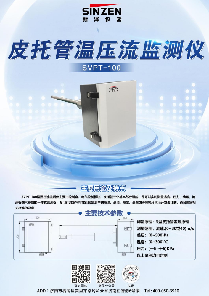 书刊简介:SVPT-100 型温压流监测仪(传感器)是可以实时测量温度、压力、动压、流速等烟气参数的一体式监测仪,是专门针对烟气排放连续监测中的高温、高湿、高尘、高腐蚀等恶劣环境而开发设计的。符合国家相关标准的要求。